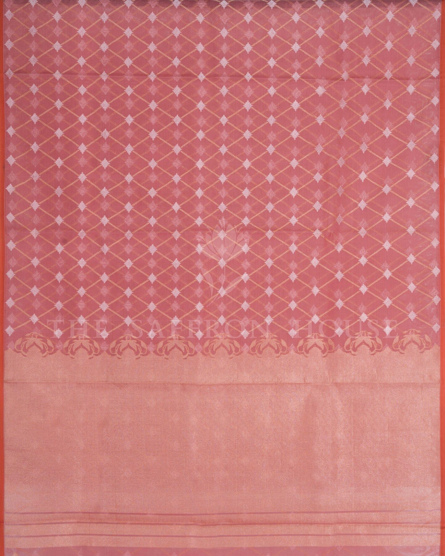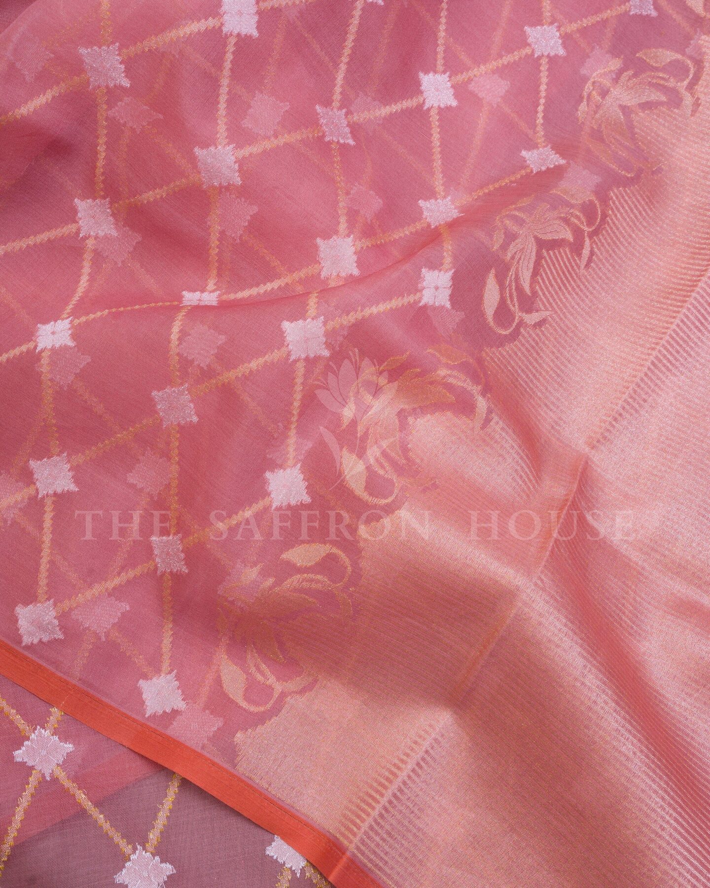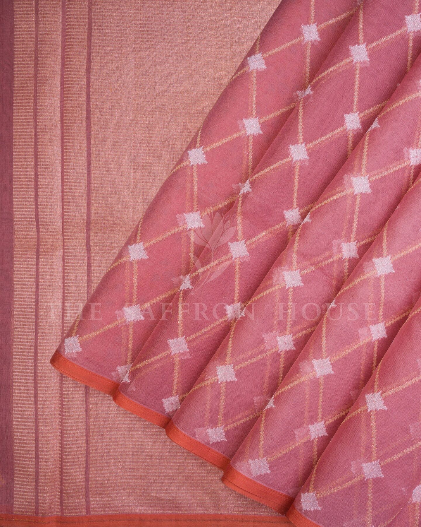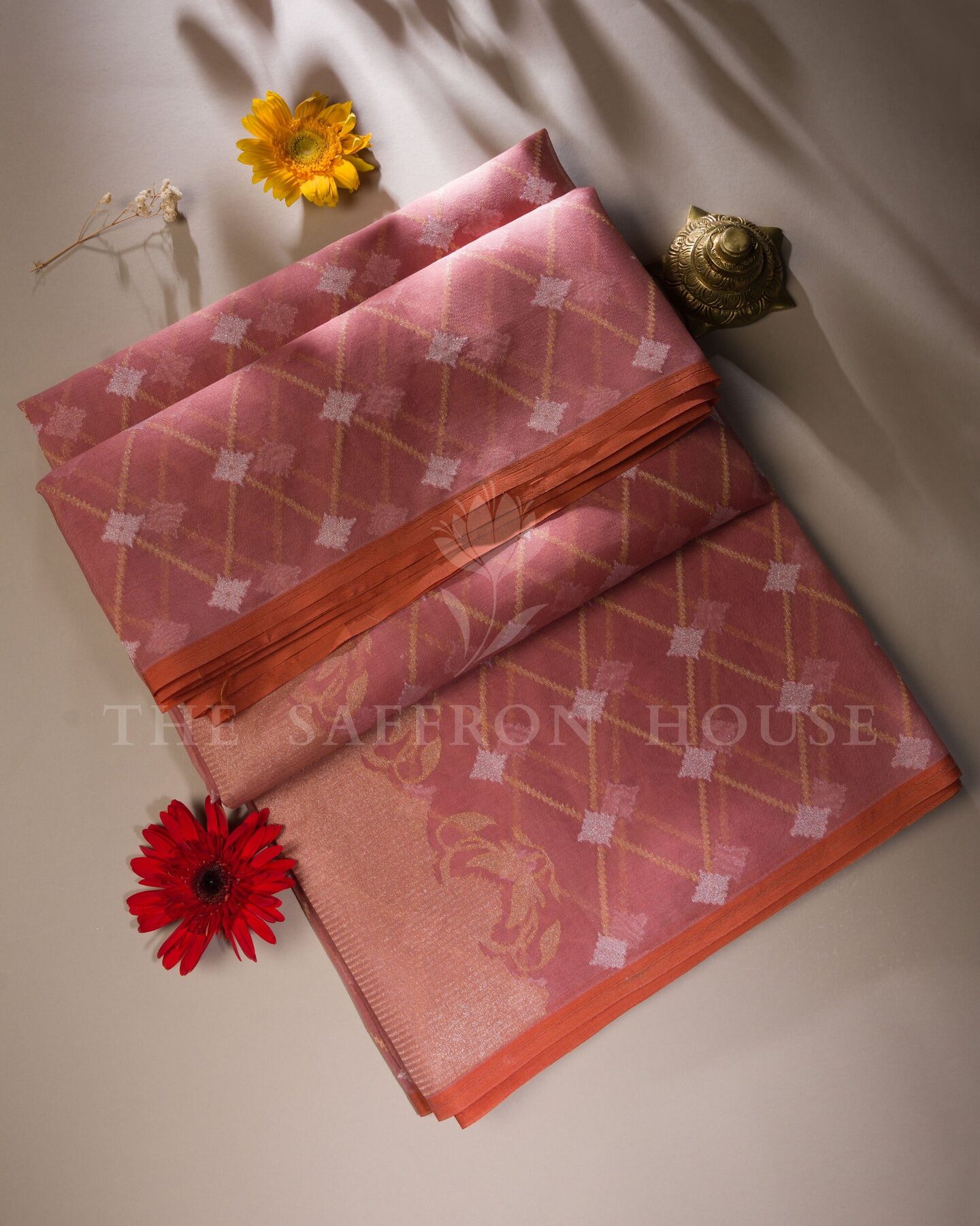 गुलनार नाज़ुक ज्यामिति और कोमल रंग की विरासत का प्रतीक है। हवादार सूती-रेशमी कोरे पर बनारस में बुनी गई इस साड़ी में लाल-रंग के धूल भरे गुलाबी बेस पर मुलायम सोने और हाथीदांत के बूटों का एक आकर्षक ज़री क्रॉस-जाल है। बनावट वाली धारियों और गहरे लाल रंग के किनारे वाला हल्का धातुई पल्लू, शांत रंगों को प्रभावित किए बिना एक विपरीतता प्रदान करता है। सुरुचिपूर्ण और बहुमुखी, यह गर्मियों के अवसरों, विचारशील उपहार देने, या अंतरंग उत्सव समारोहों के लिए आदर्श है। कपड़ा: शुद्ध बनारस कोरा (कपास-रेशम) रंग: गोल्ड और आइवरी ज़री के साथ डस्टी रोज़ मोटिफ: ग्रिड लेआउट में क्रॉस जाल बूटा बॉर्डर: ठोस लाल सेल्वेज पल्लू: मुलायम चमक के साथ सूक्ष्म धारीदार बुनाई अनुभव: पारदर्शी, हल्का, अर्ध-कठोर ड्रेप आदर्श: दिन की शादियाँ, जागरूक फैशन, सुरुचिपूर्ण उपहार