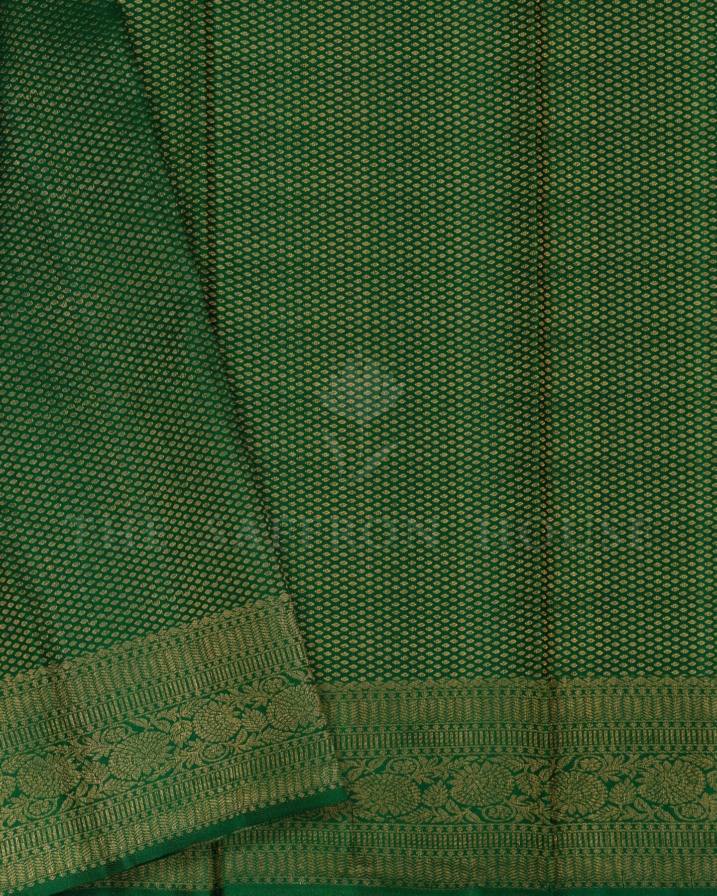 Pure mulberry silk with pure zari weaving, providing a rich, lustrous texture and structure that drapes like a dream — ideal for festive dressing.. From the looms of Kanchipuram, Tamil Nadu, where master weavers have passed down their skills over generations.