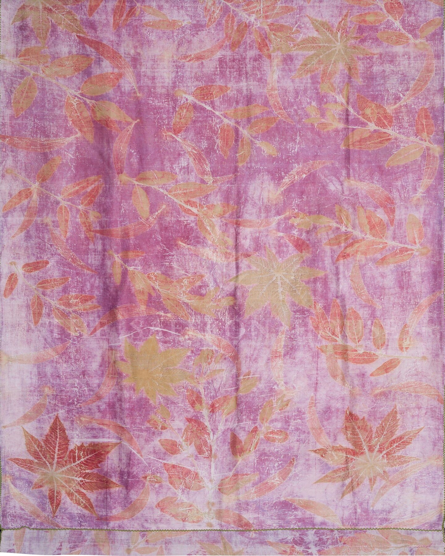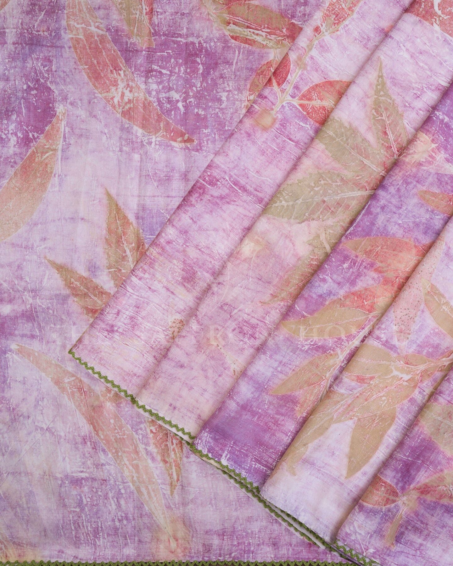 वसंता रेशम पर बसंत की क्षणभंगुर सुंदरता को उकेरती है। असली पत्तों और प्राकृतिक रंगाई तकनीकों का उपयोग करके हस्तनिर्मित, यह शुद्ध शहतूत रेशमी साड़ी, बैंगनी, लाल और मूंगा के कोमल रंगों में इको-प्रिंटेड है। प्रत्येक पत्ती की छाप प्रकृति की अपनी ब्रशस्ट्रोक है—अद्वितीय, अप्रत्याशित और पूरी तरह से अनूठी। एक जैविक स्पर्श के लिए स्कैलप्ड हरे रंग के लेस बॉर्डर के साथ समाप्त। कपड़ा: शुद्ध शहतूत रेशम तकनीक: असली पत्तियों के साथ वानस्पतिक इको-प्रिंटिंग रंग: मौवे, कोरल और ब्लश पिंक बॉर्डर: स्कैलप्ड ग्रीन क्रोशिया-स्टाइल एजिंग एहसास: पंख जैसा हल्कापन, शुद्ध लालित्य, कोमल चमक आदर्श: टिकाऊ स्टाइलिंग, उपहार, जागरूक फैशन
