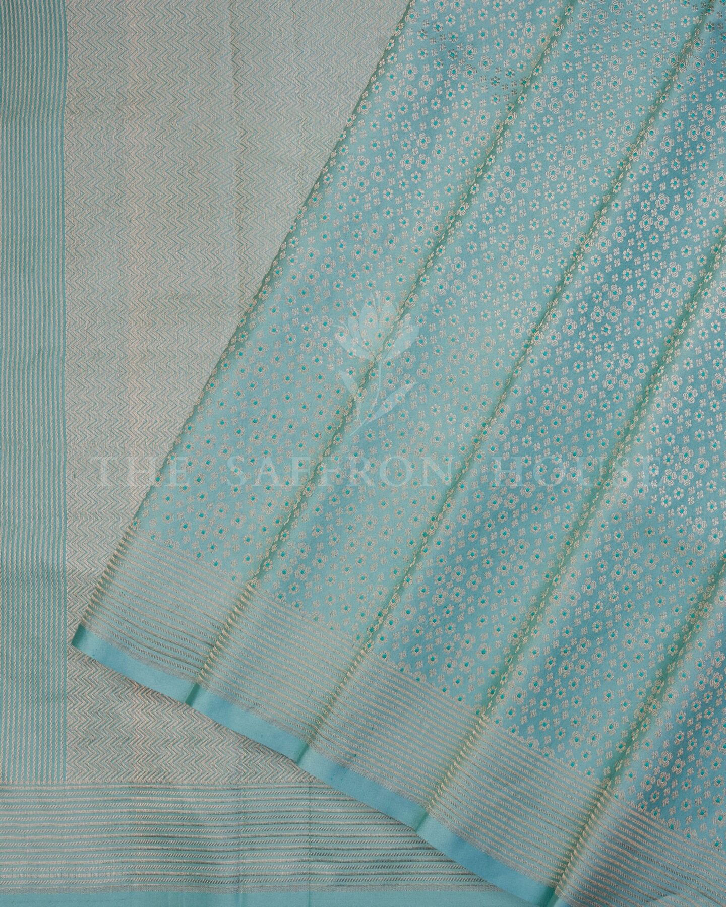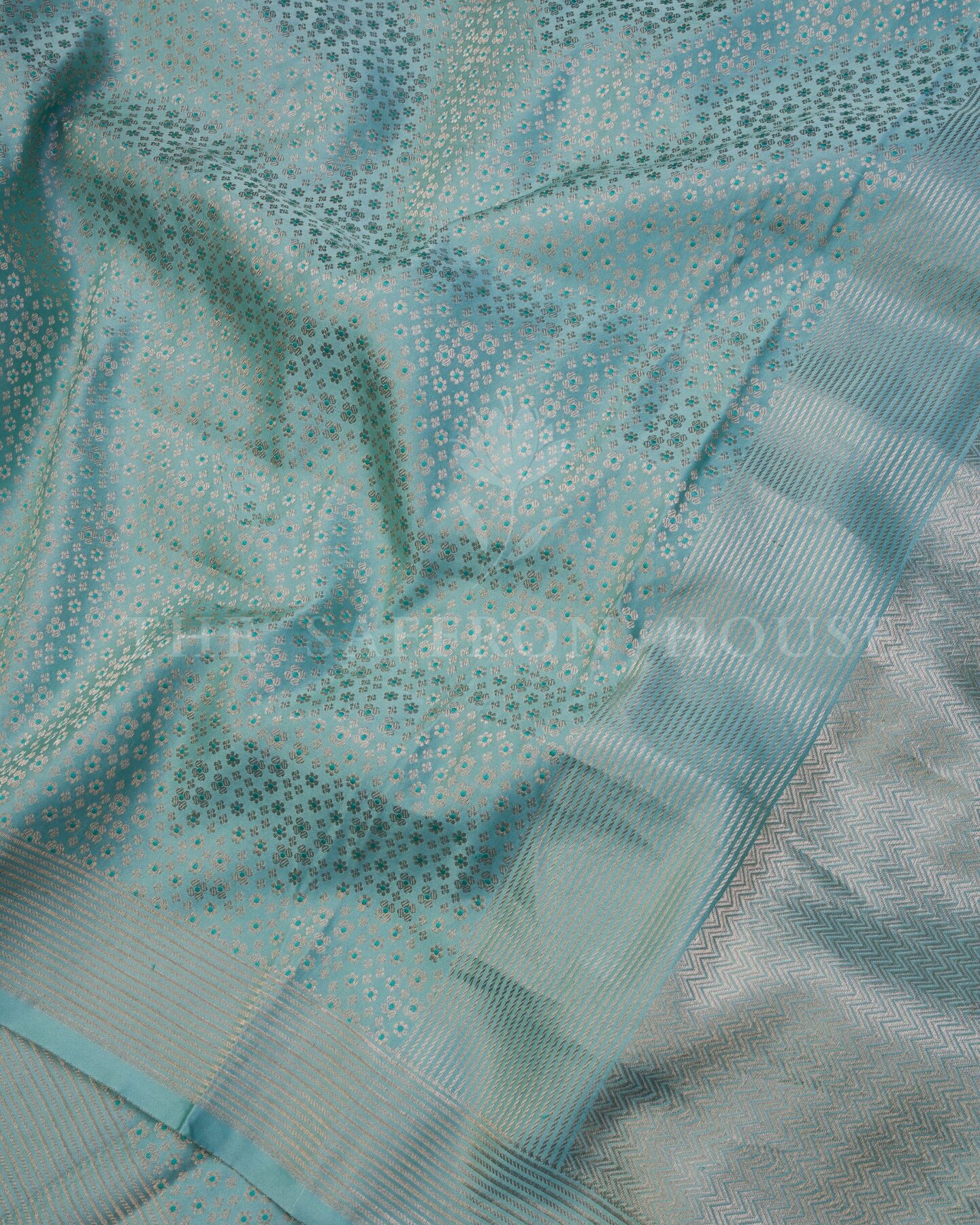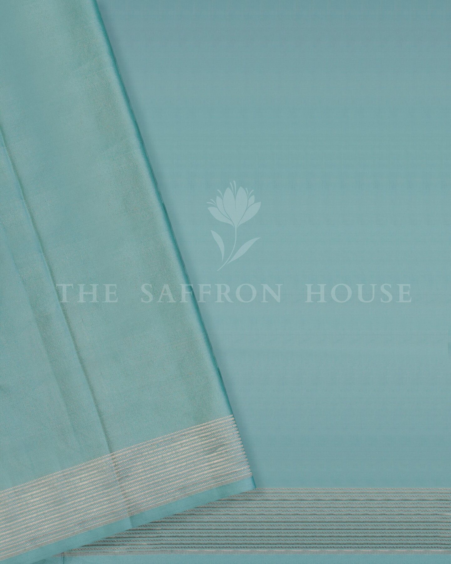 Some colours hold memory. Blue — calm and majestic as a monsoon sky — becomes something entirely new when woven into pure Kanjivaram silk. This Handwoven saree carries that colour with quiet authority and grace.