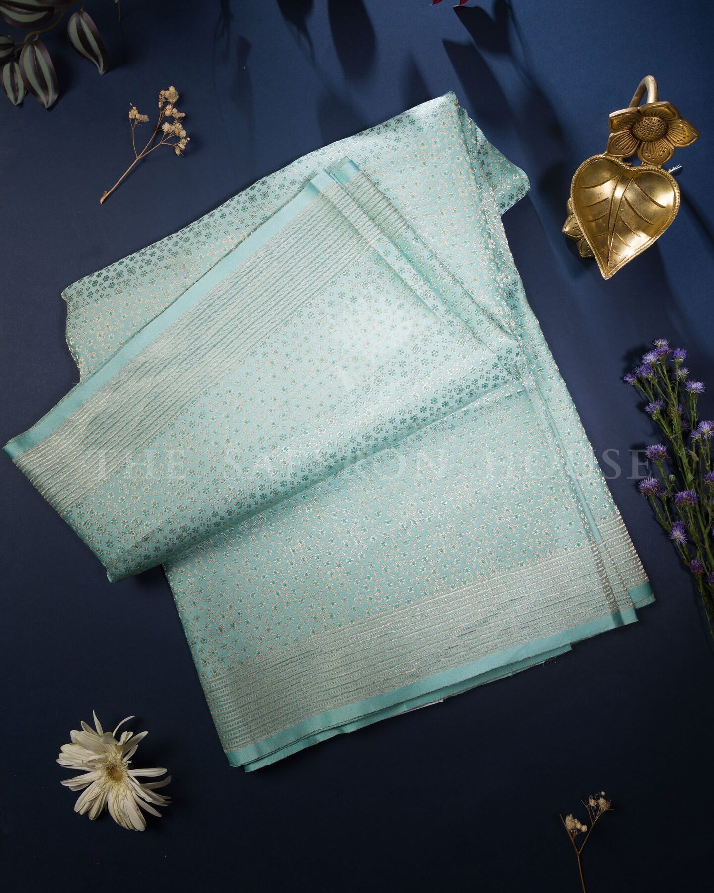 Mashru combines the best of both worlds: silk on the top for sheen and formality, and cotton beneath for breathability.. Handcrafted in the weaving clusters of Varanasi, this saree upholds the tradition of sustainable weaving with a contemporary twist.