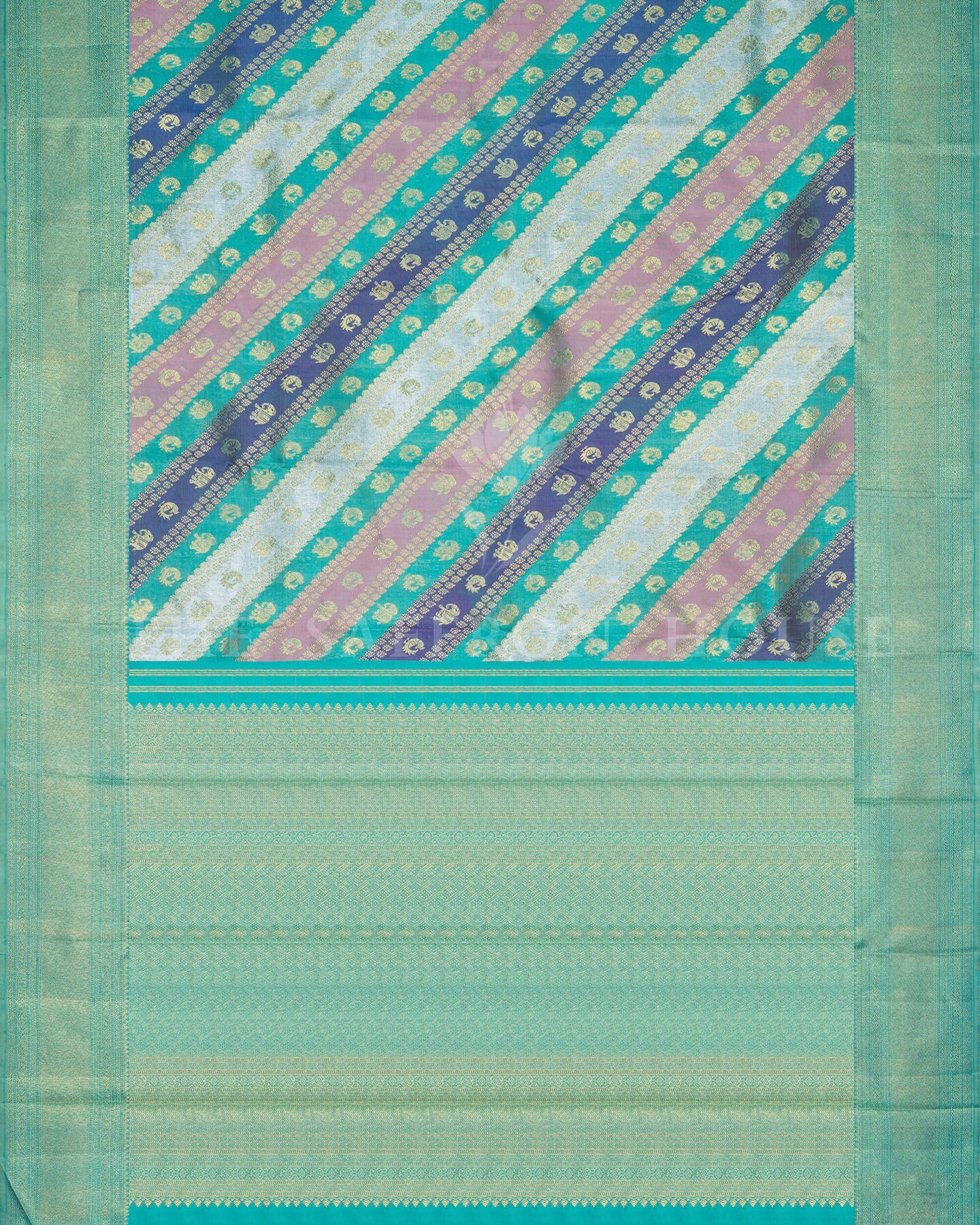 There is something about the interplay of lavender and violet that feels both ancient and alive. This Brocade Kanjivaram silk saree opens with soft as freshly gathered flowers, its surface shimmering with the unhurried rhythm of the loom.