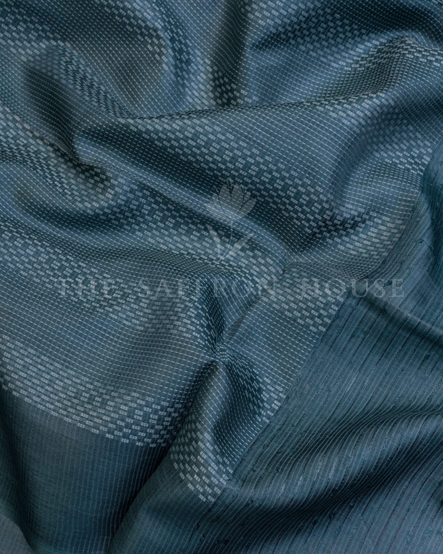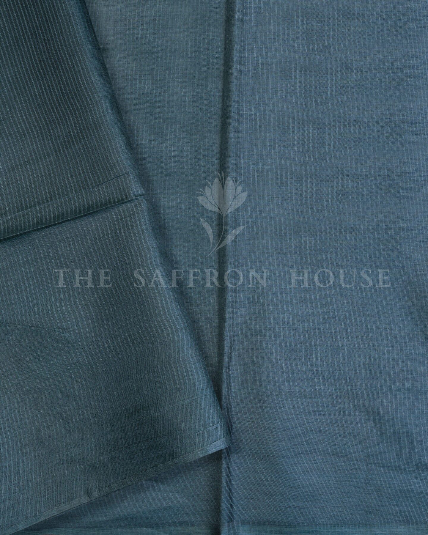 There is something about the interplay of blue and grey that feels both ancient and alive. This Stripes Kanjivaram silk saree opens with calm and majestic as a monsoon sky, its surface shimmering with the unhurried rhythm of the loom.