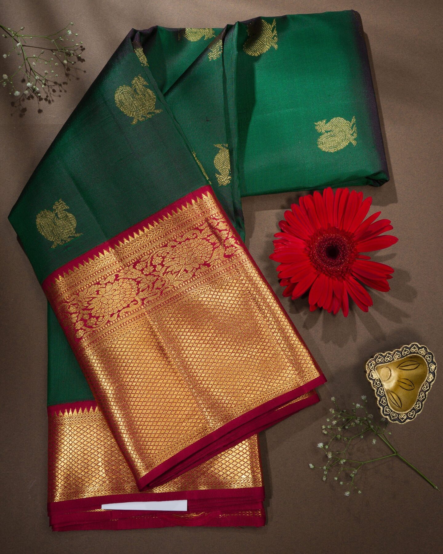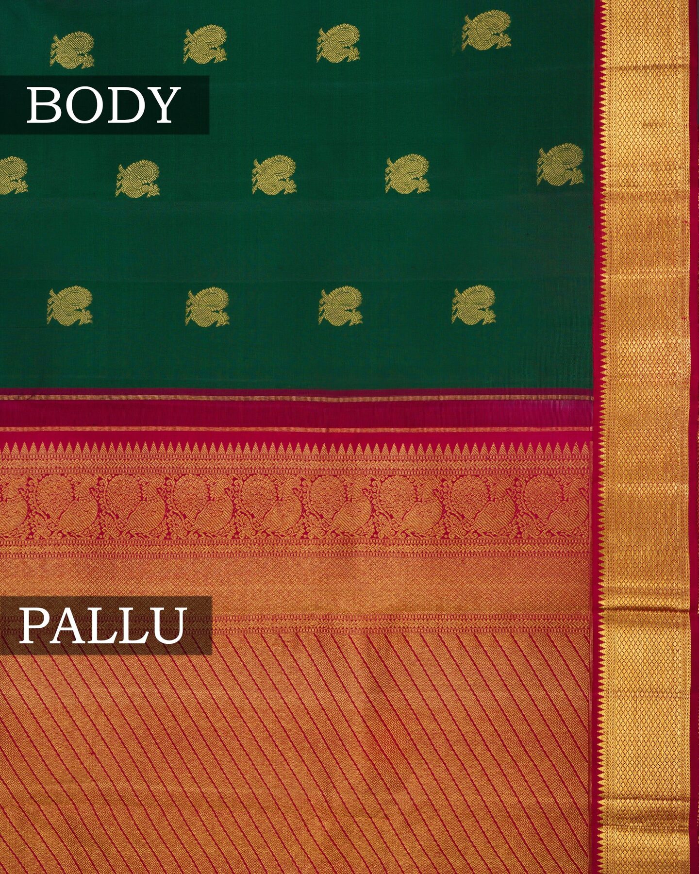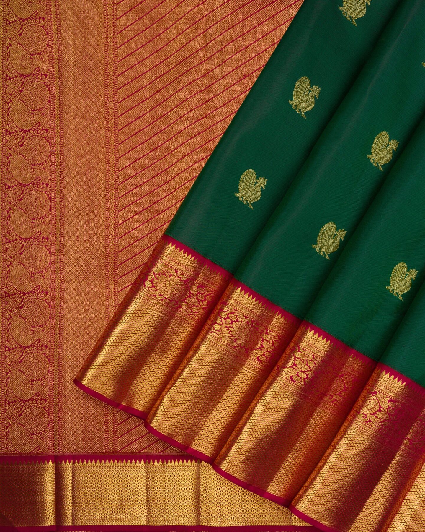 Bottle Green And Burgundy Maroon Korvai Kanjivaram Silk Saree – The Saffron House