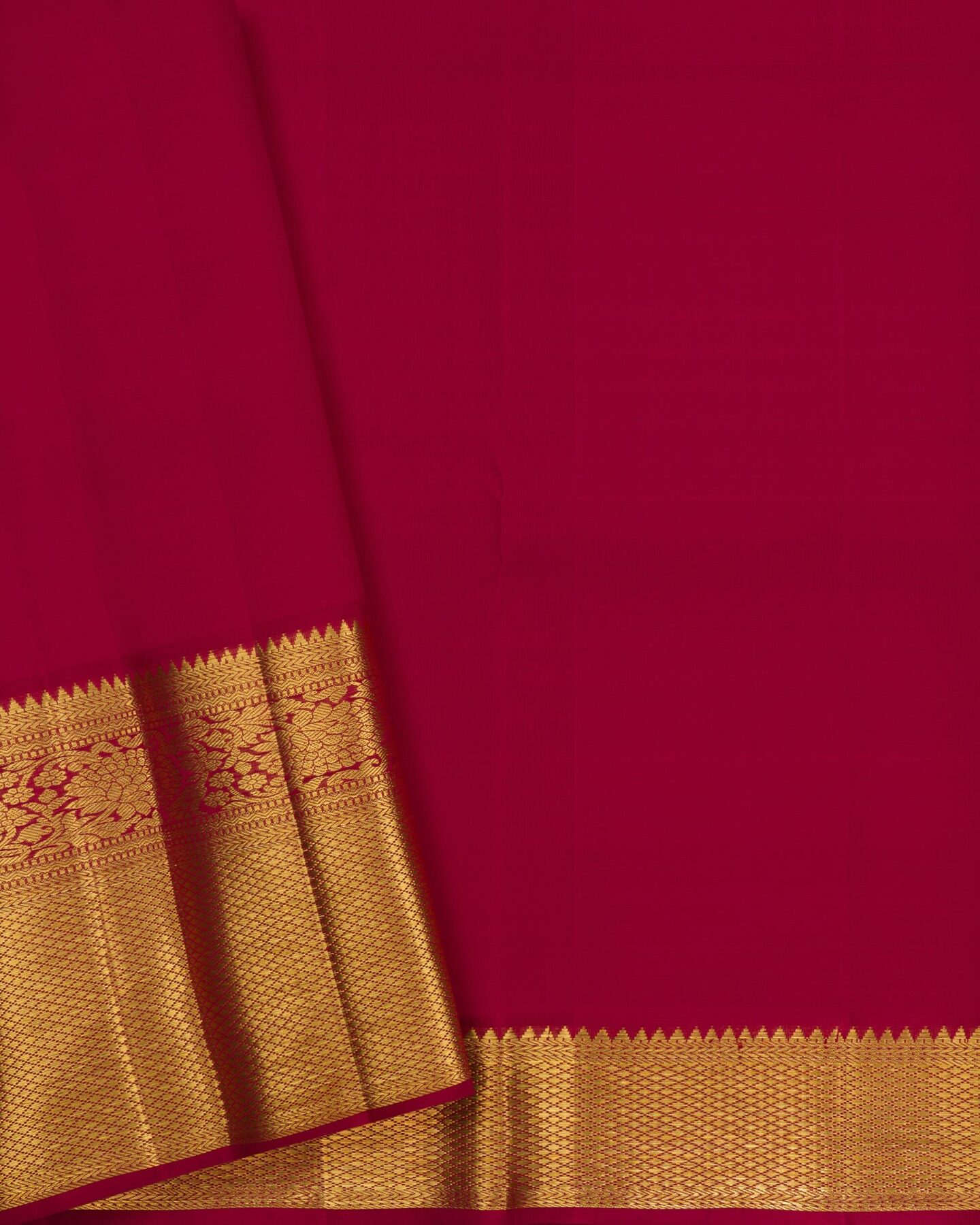 Pure mulberry silk with pure zari weaving, providing a rich, lustrous texture and structure that drapes like a dream — ideal for festive dressing.. From the looms of Kanchipuram, Tamil Nadu, where master weavers have passed down their skills over generations.