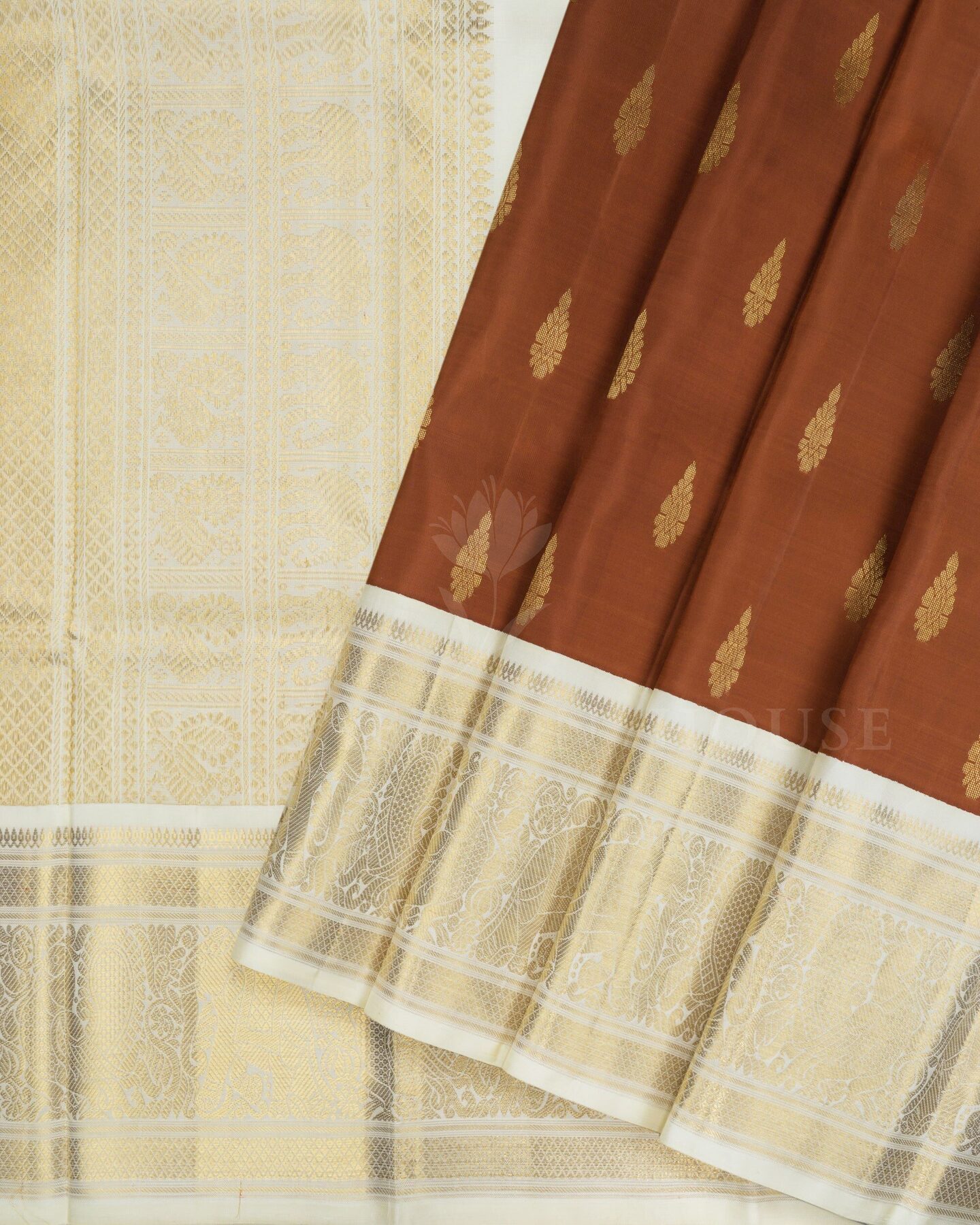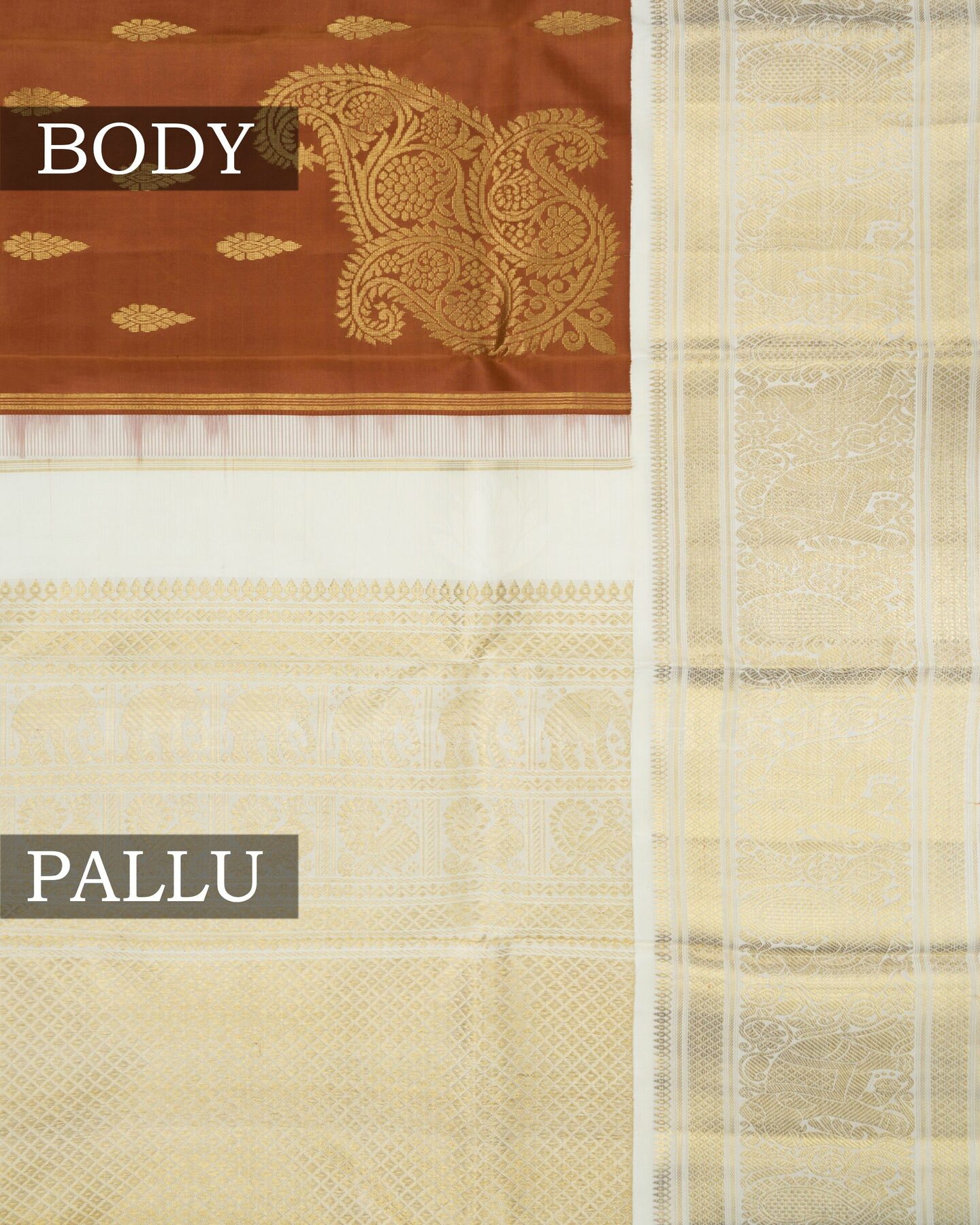 Warm Brown And Ivory Cream Korvai Kanjivaram Silk Saree – The Saffron House