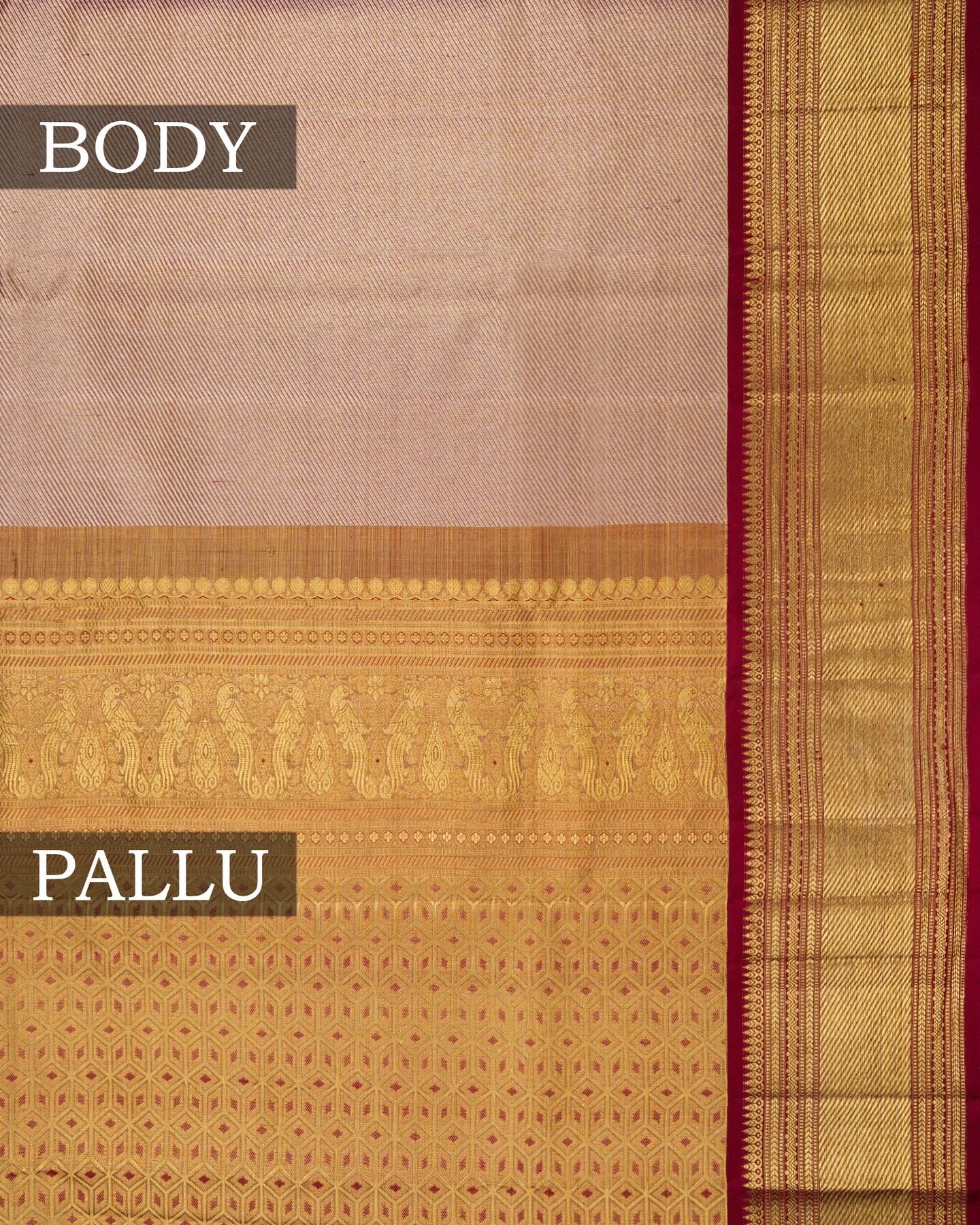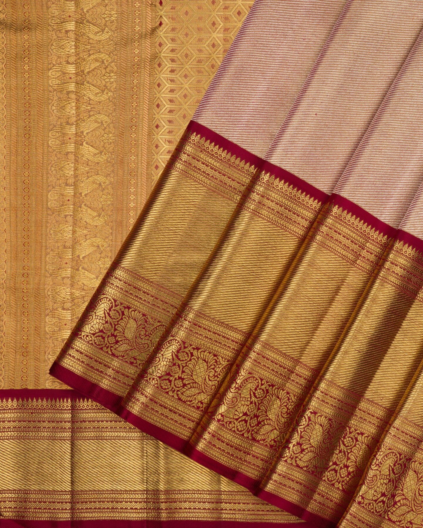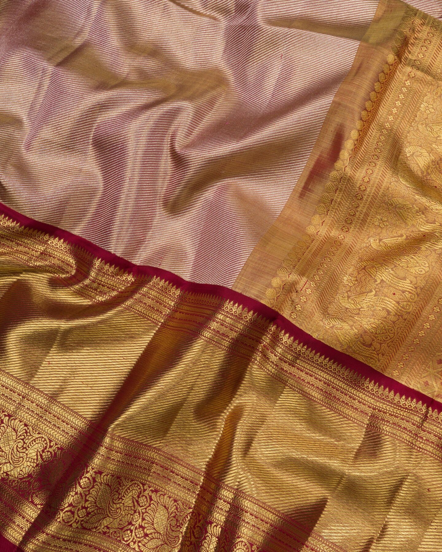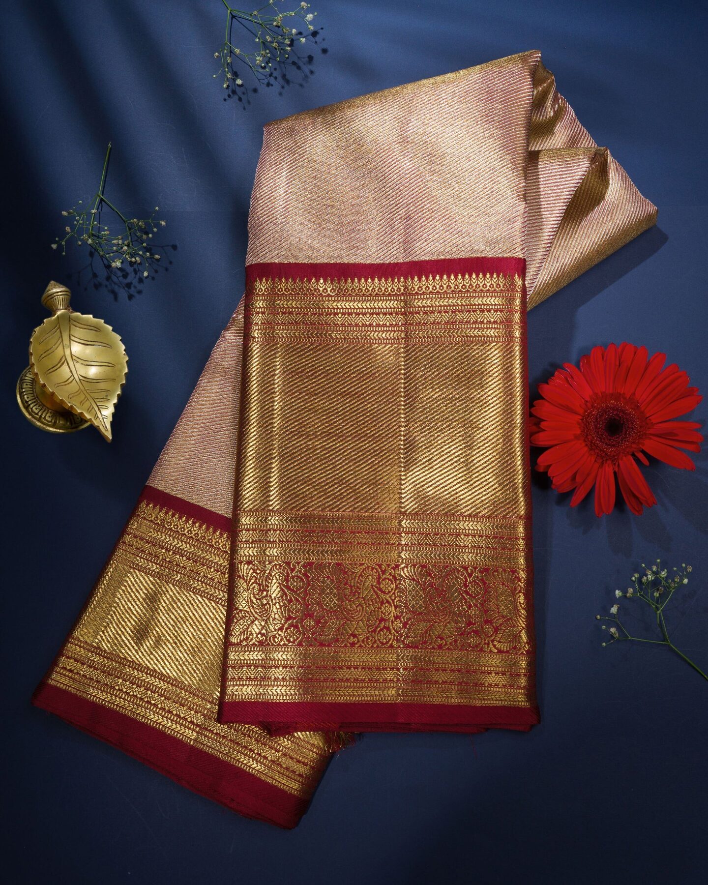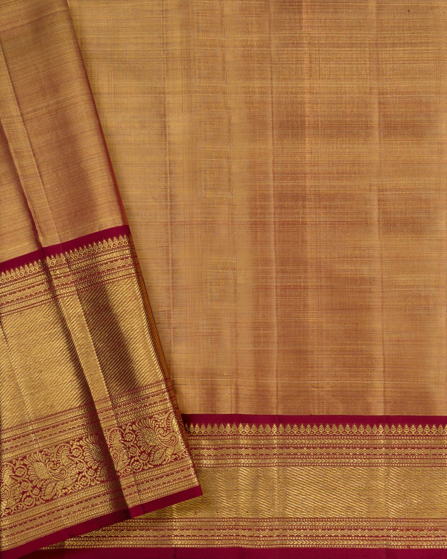 gold zari runs through the weave, catching light the way temple gold does — slowly, deeply, unforgettably.