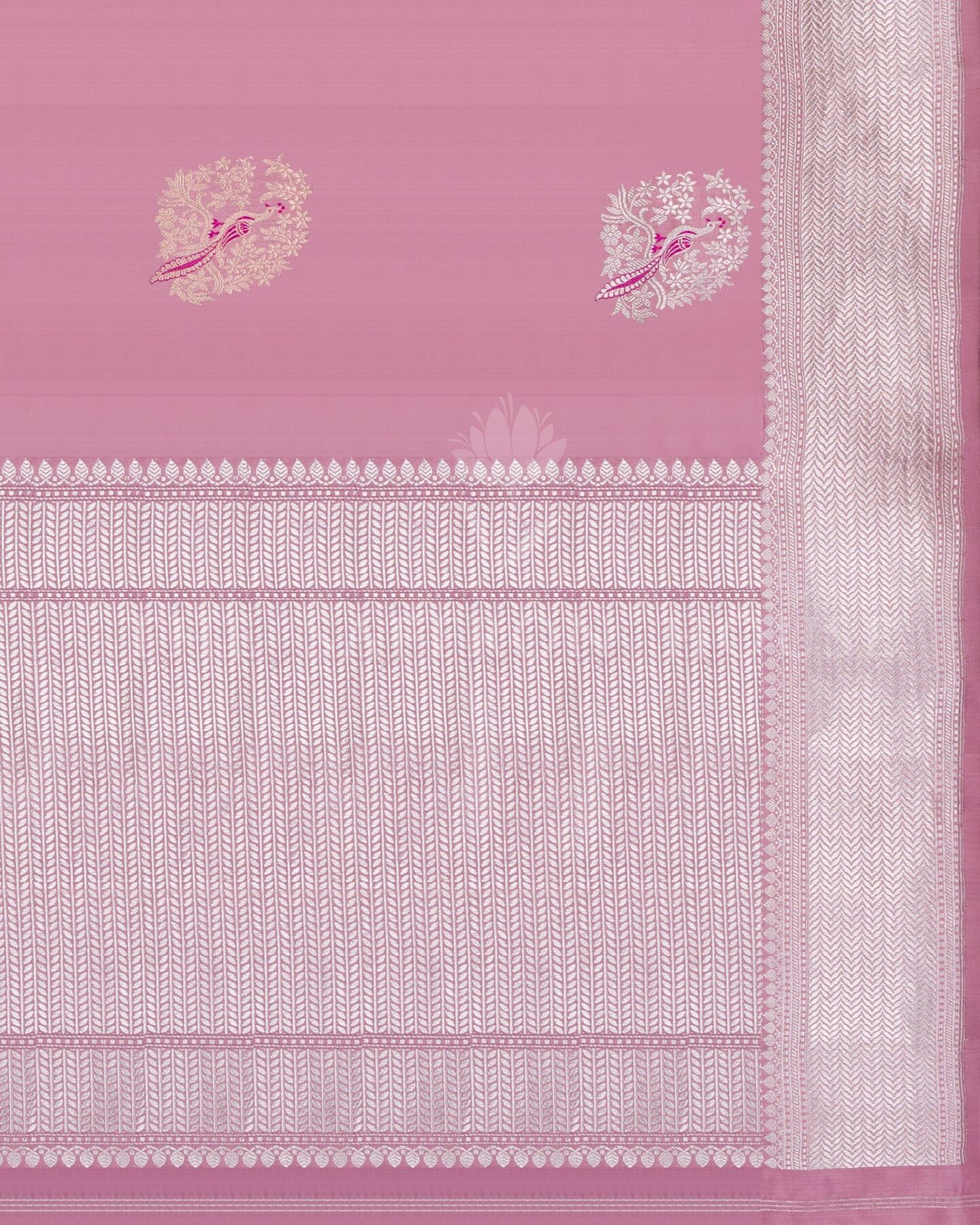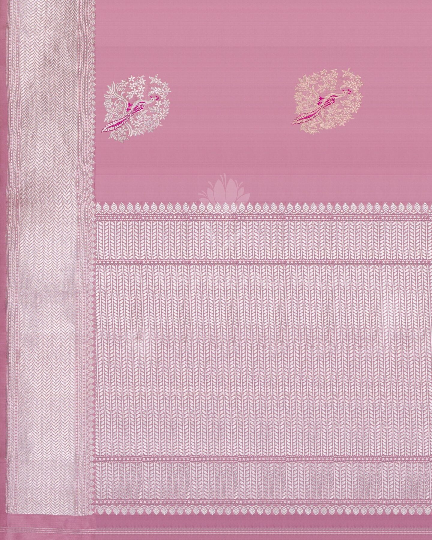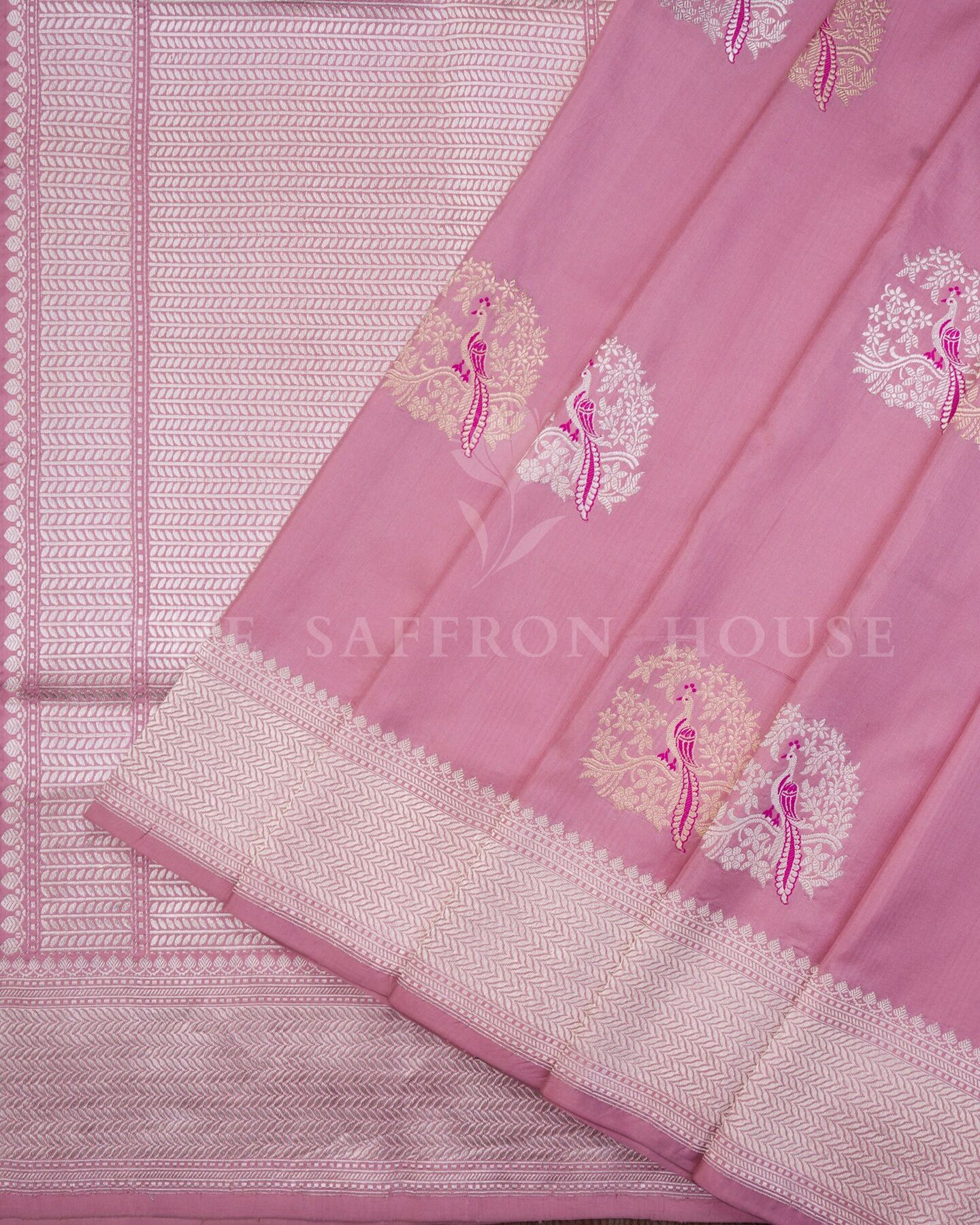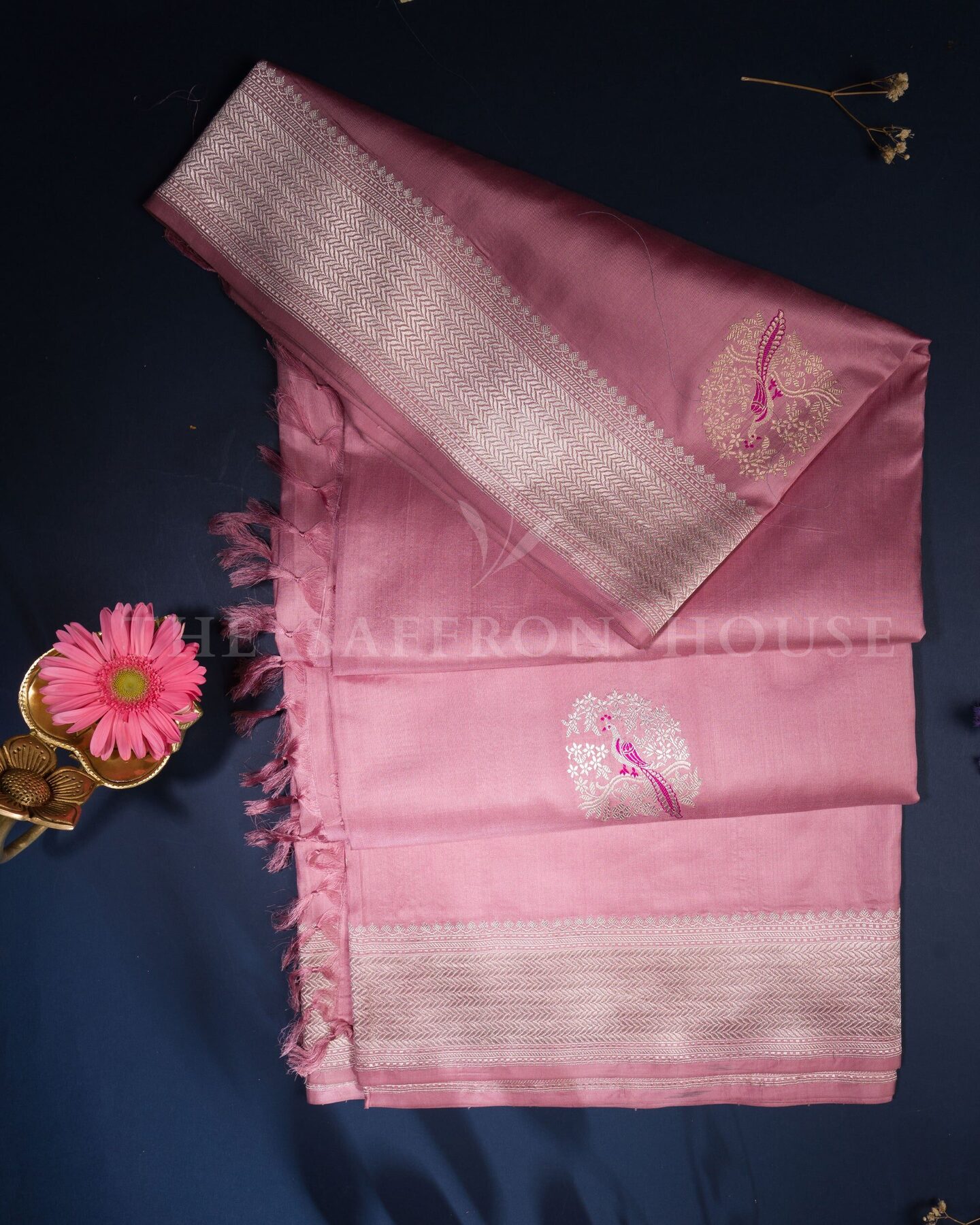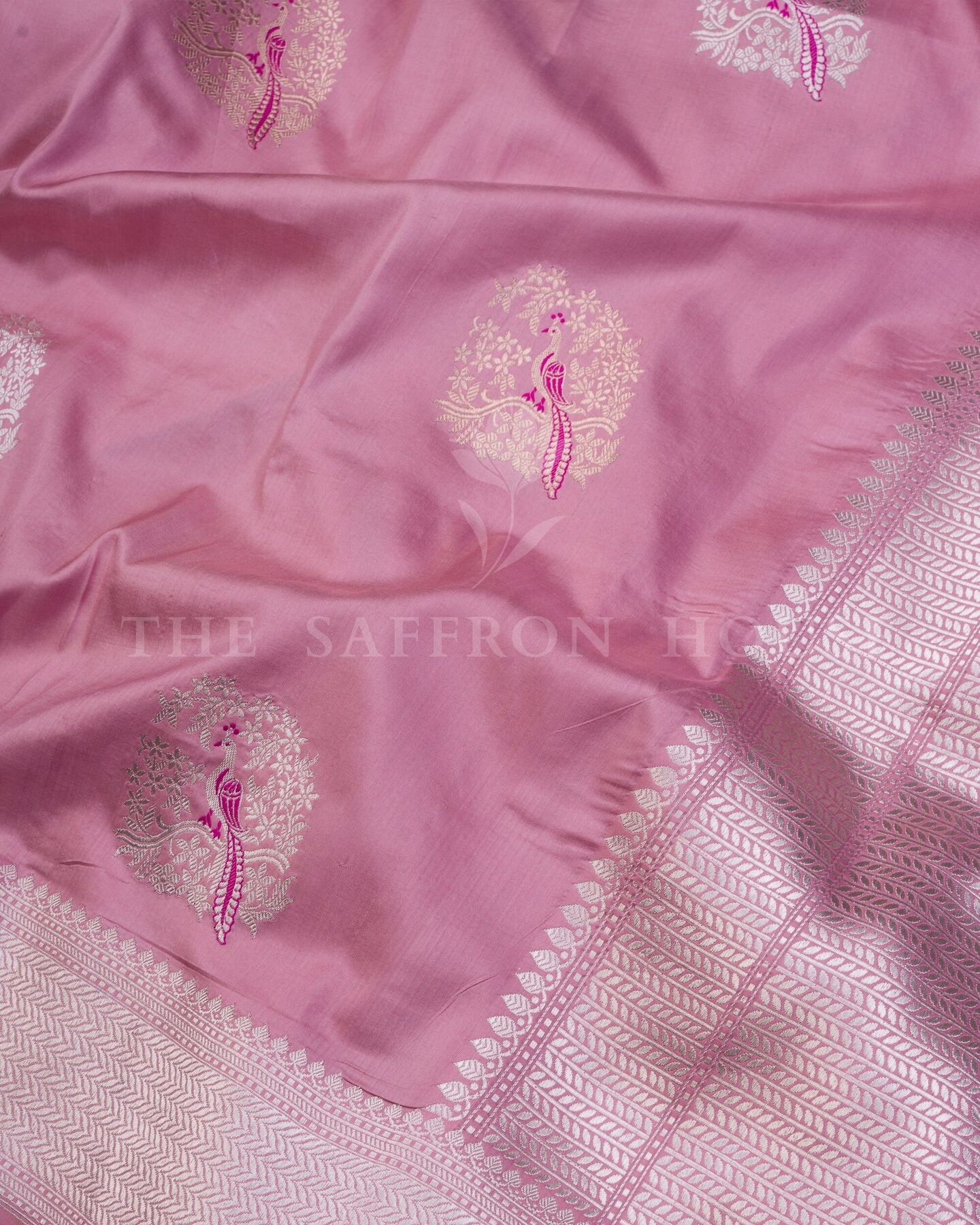 Some colours hold memory. Rose — radiant in its own quiet way — becomes something entirely new when woven into pure Kanjivaram silk. This Handwoven saree carries that colour with quiet authority and grace.