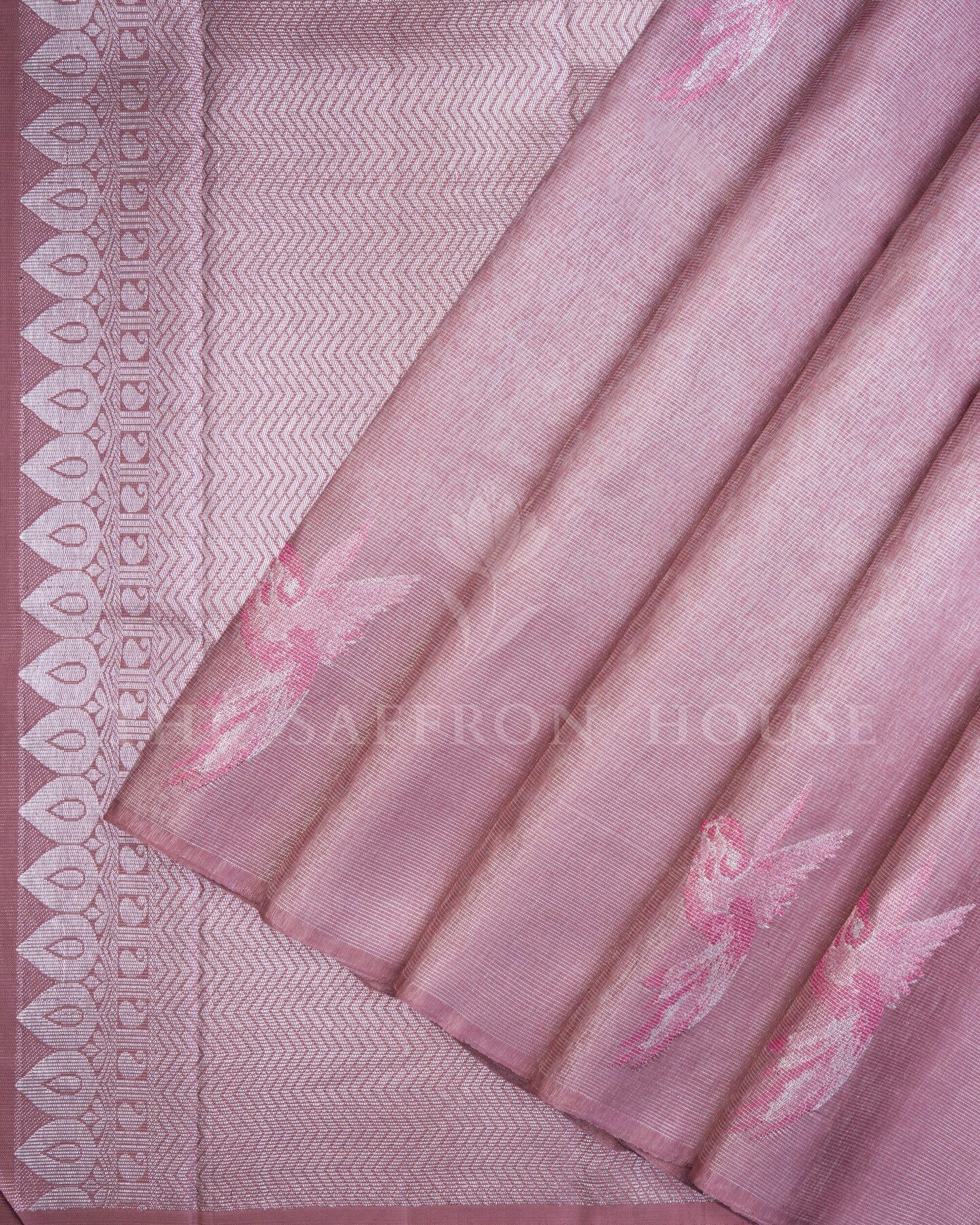 Some colours hold memory. Rose — radiant in its own quiet way — becomes something entirely new when woven into pure Kanjivaram silk. This Handwoven saree carries that colour with quiet authority and grace.