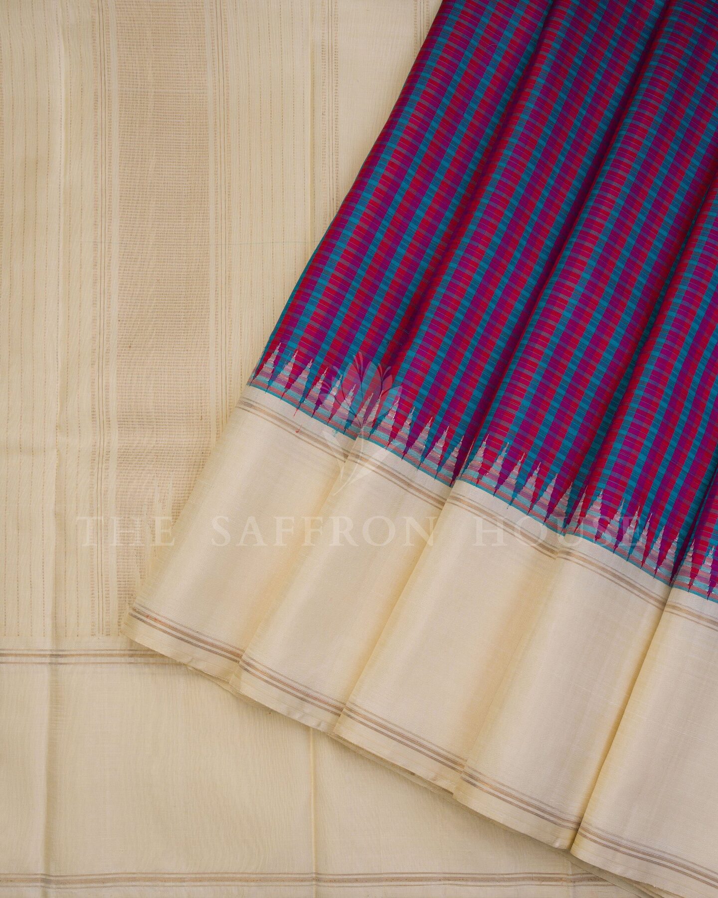 Woven in pure mulberry silk, this saree carries the weight and drape that only real silk can offer. Kanchipuram, Tamil Nadu, South India.