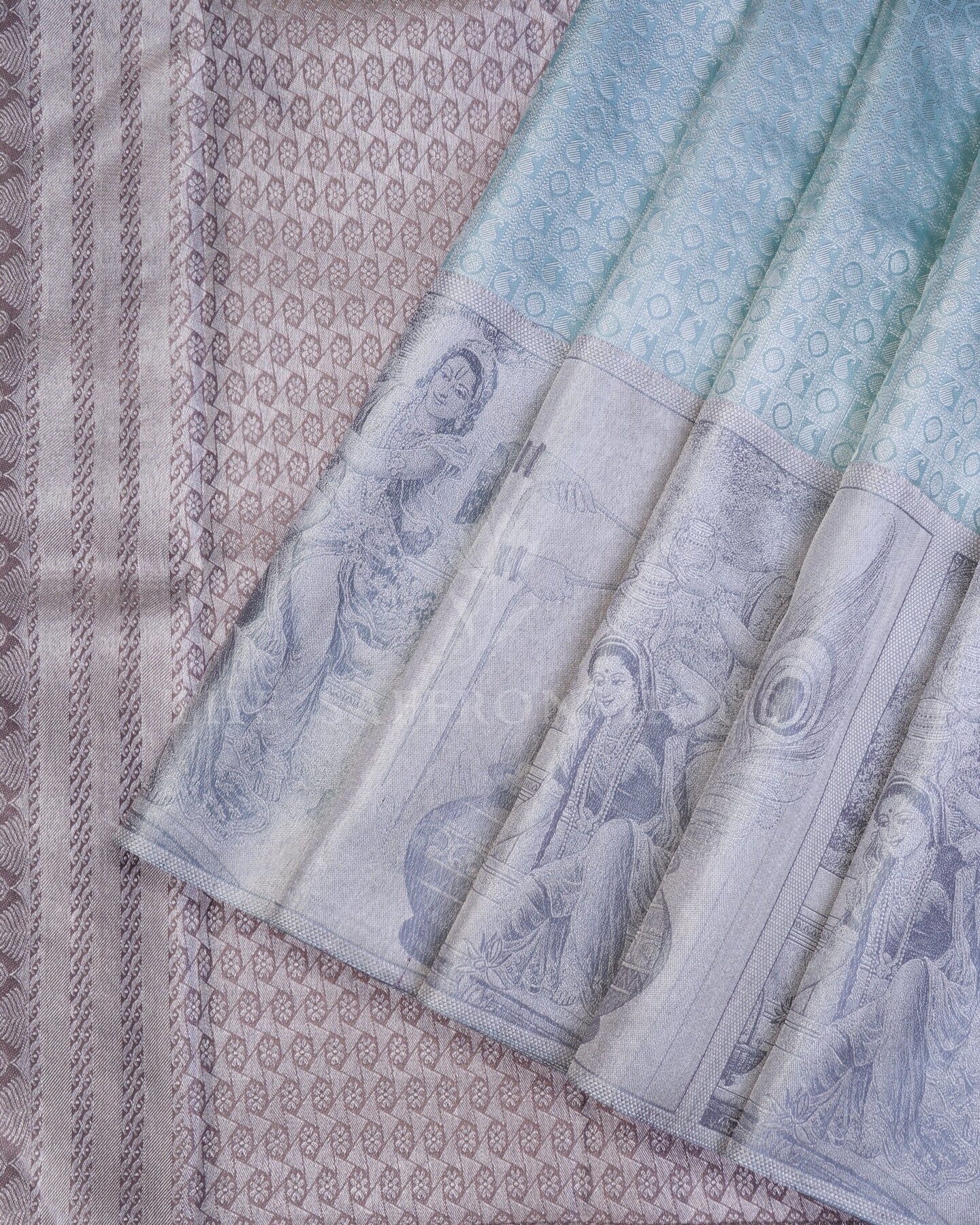 There is something about the interplay of blue and grey that feels both ancient and alive. This Korvai Kanjivaram silk saree opens with calm and majestic as a monsoon sky, its surface shimmering with the unhurried rhythm of the loom.