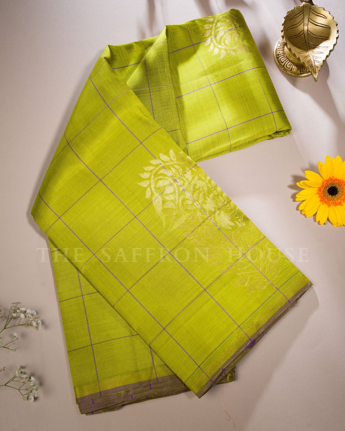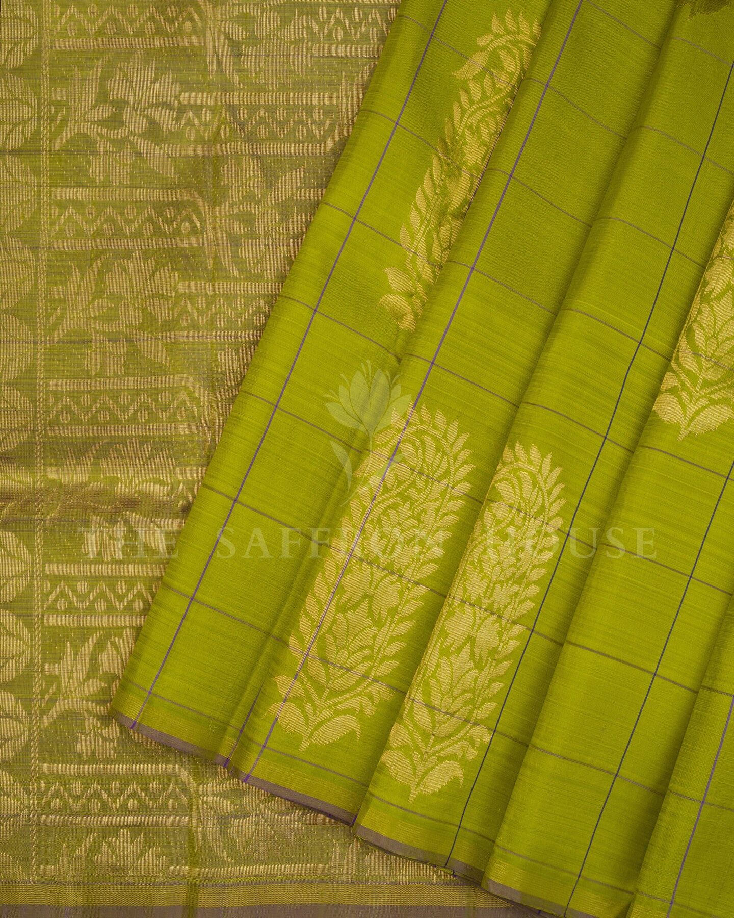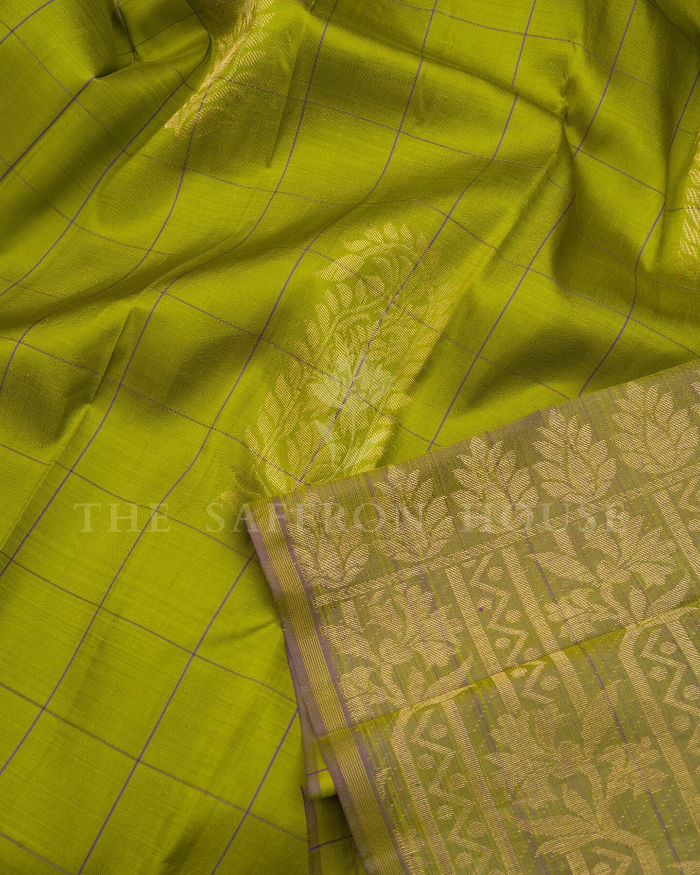Some colours hold memory. Leaf Green — radiant in its own quiet way — becomes something entirely new when woven into pure Kanjivaram silk. This Handwoven saree carries that colour with quiet authority and grace.