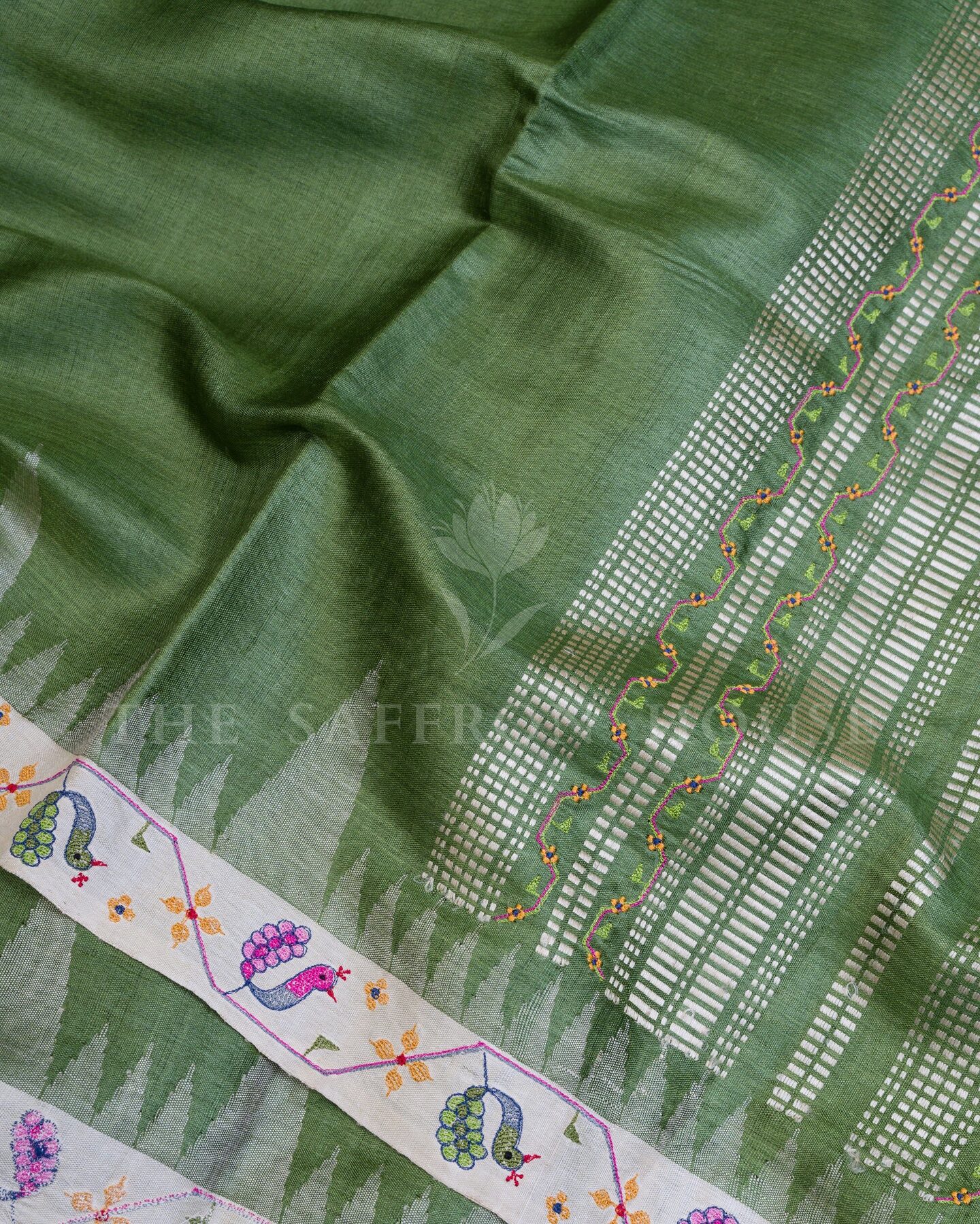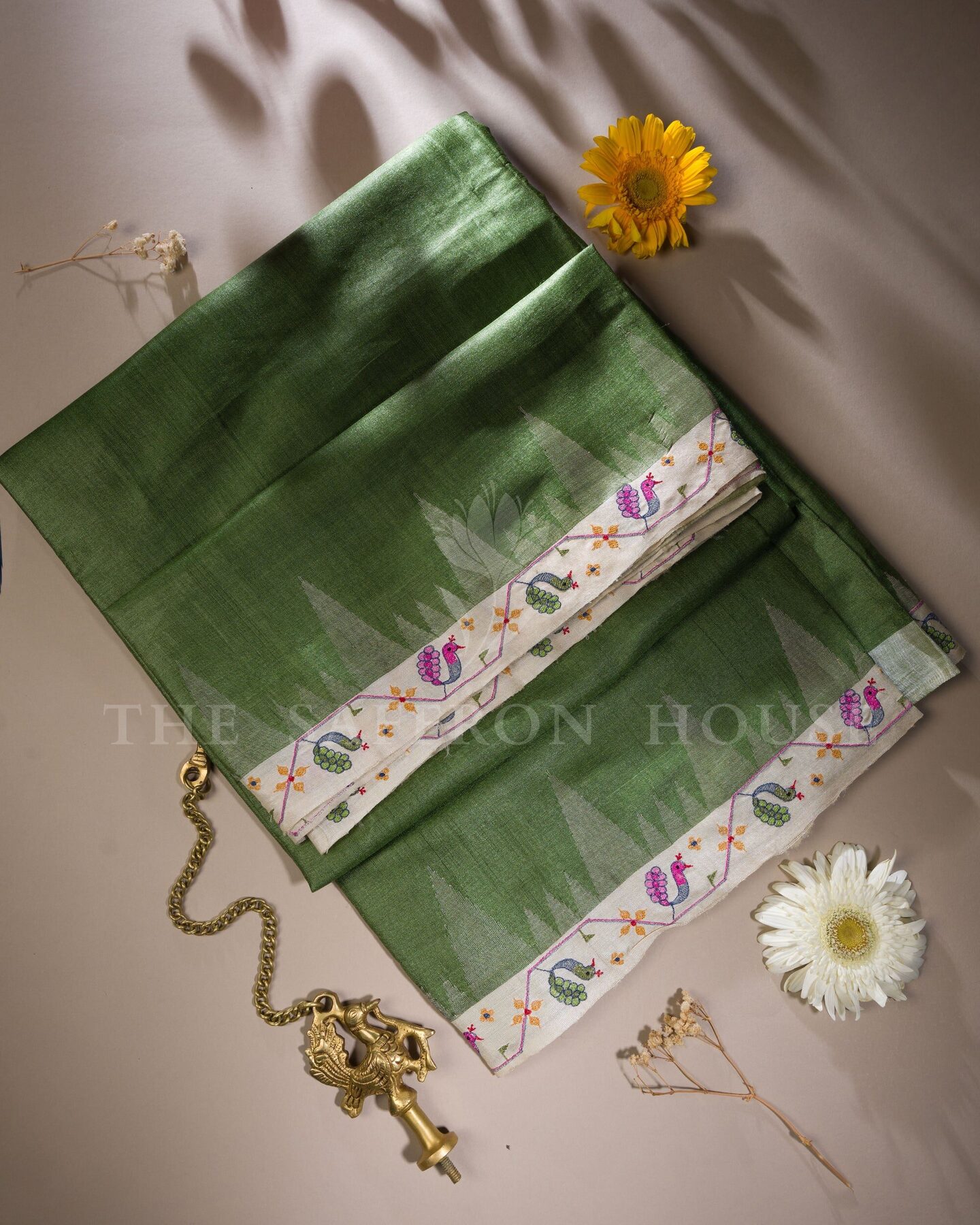 Tussar silk is a type of wild silk known for its natural golden sheen and rich texture.. Tamil Nadu, South India.