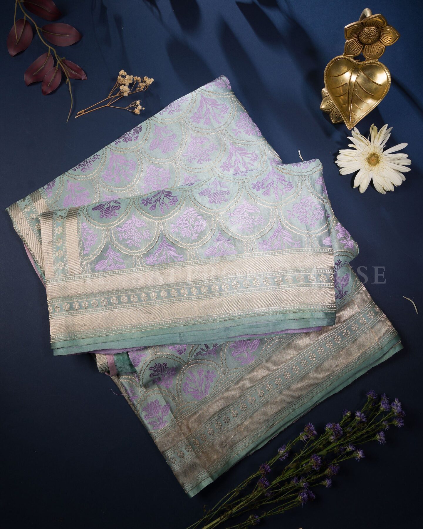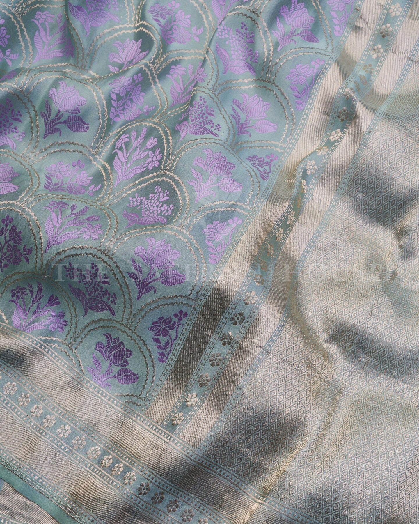 Mashru combines the best of both worlds: silk on the top for sheen and formality, and cotton beneath for breathability.. Handcrafted in the weaving clusters of Varanasi, this saree upholds the tradition of sustainable weaving with a contemporary twist.