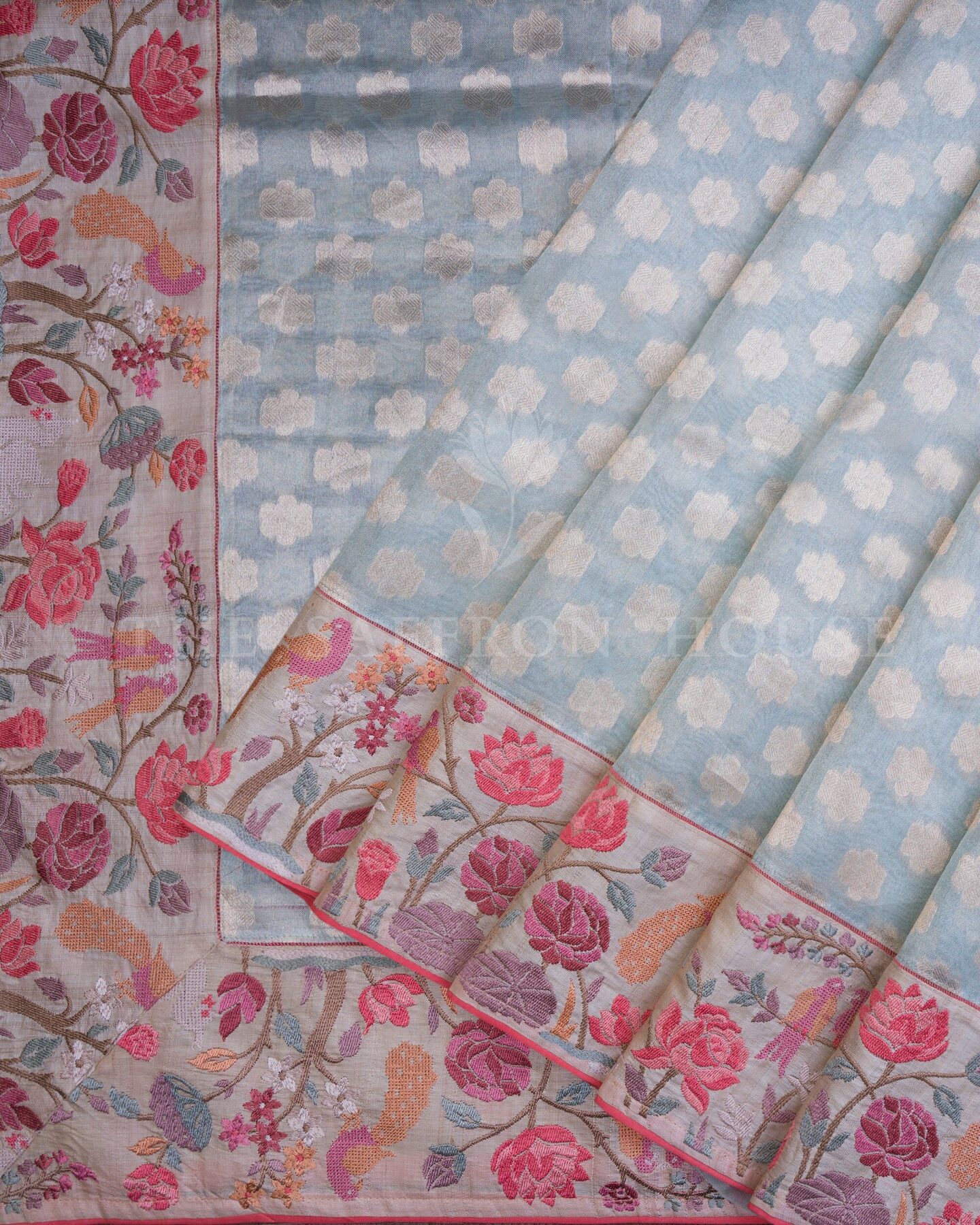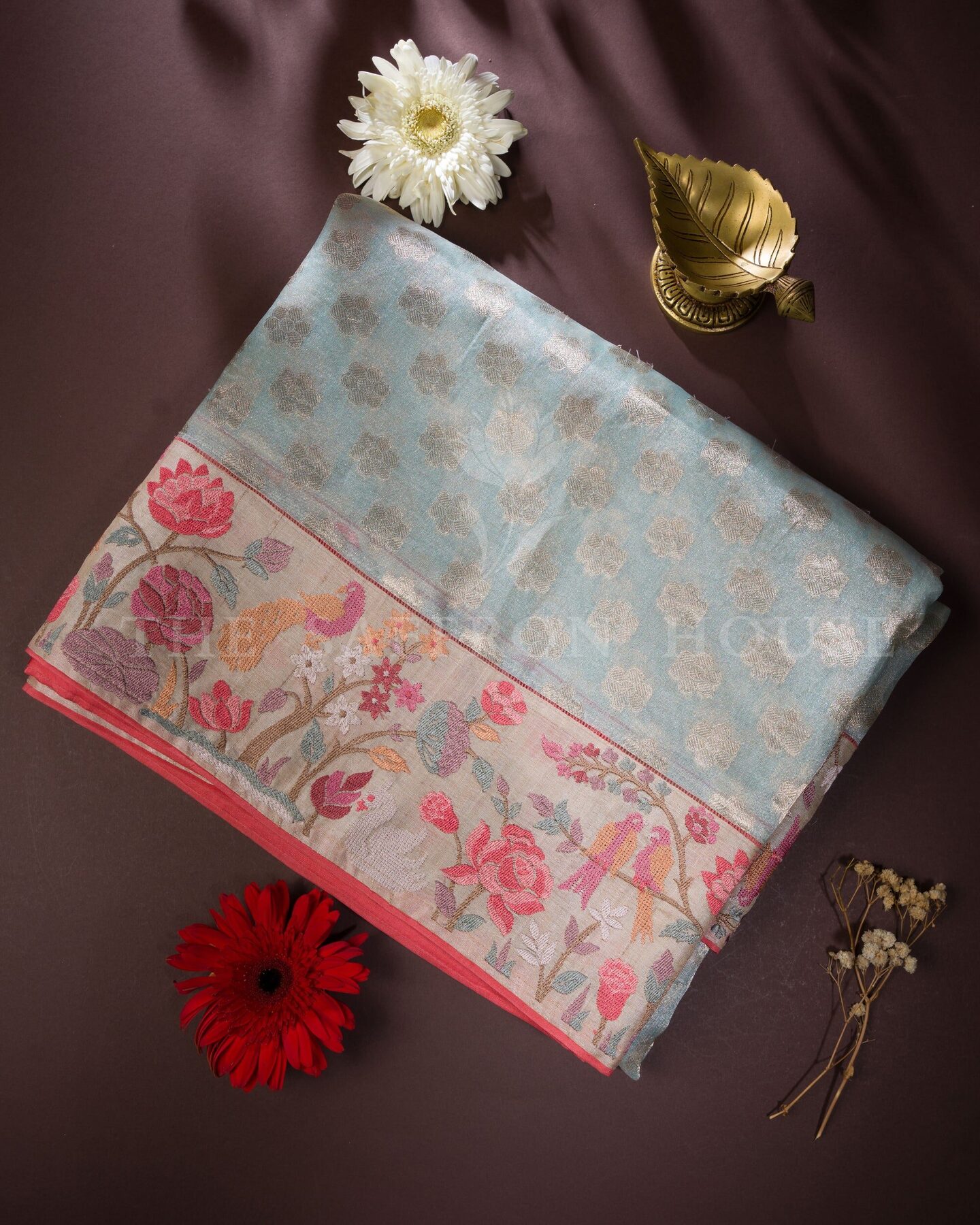 antique zari runs through the weave, catching light the way temple gold does — slowly, deeply, unforgettably.