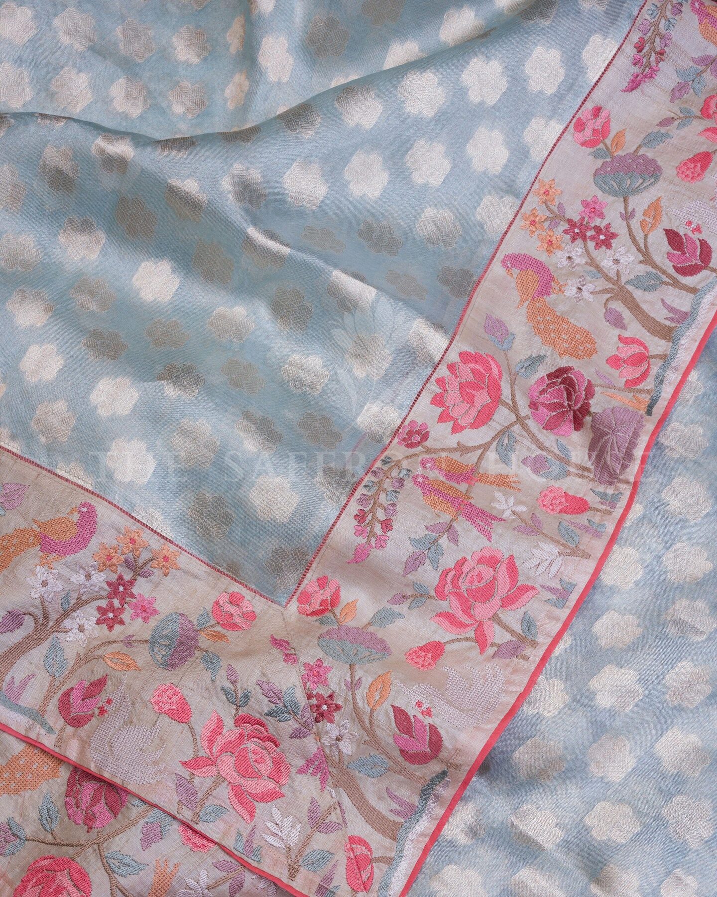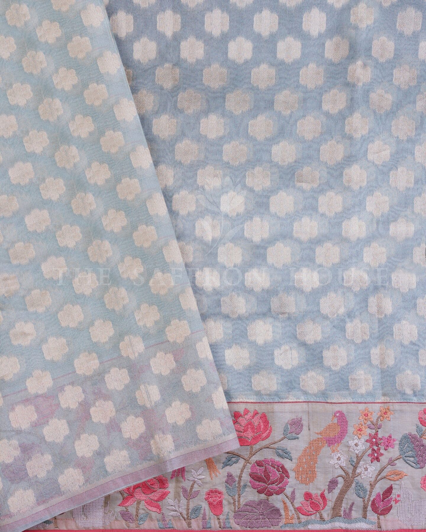 Kora Silk is a fine, sheer fabric made from high-quality silk yarns, known for its crisp texture, lightweight feel, and natural sheen.. Woven in Varanasi, the hub of India's handloom Banarasi sarees, this piece is crafted by skilled artisans known for their zari work and delicate texturing of fabrics like Kora silk.