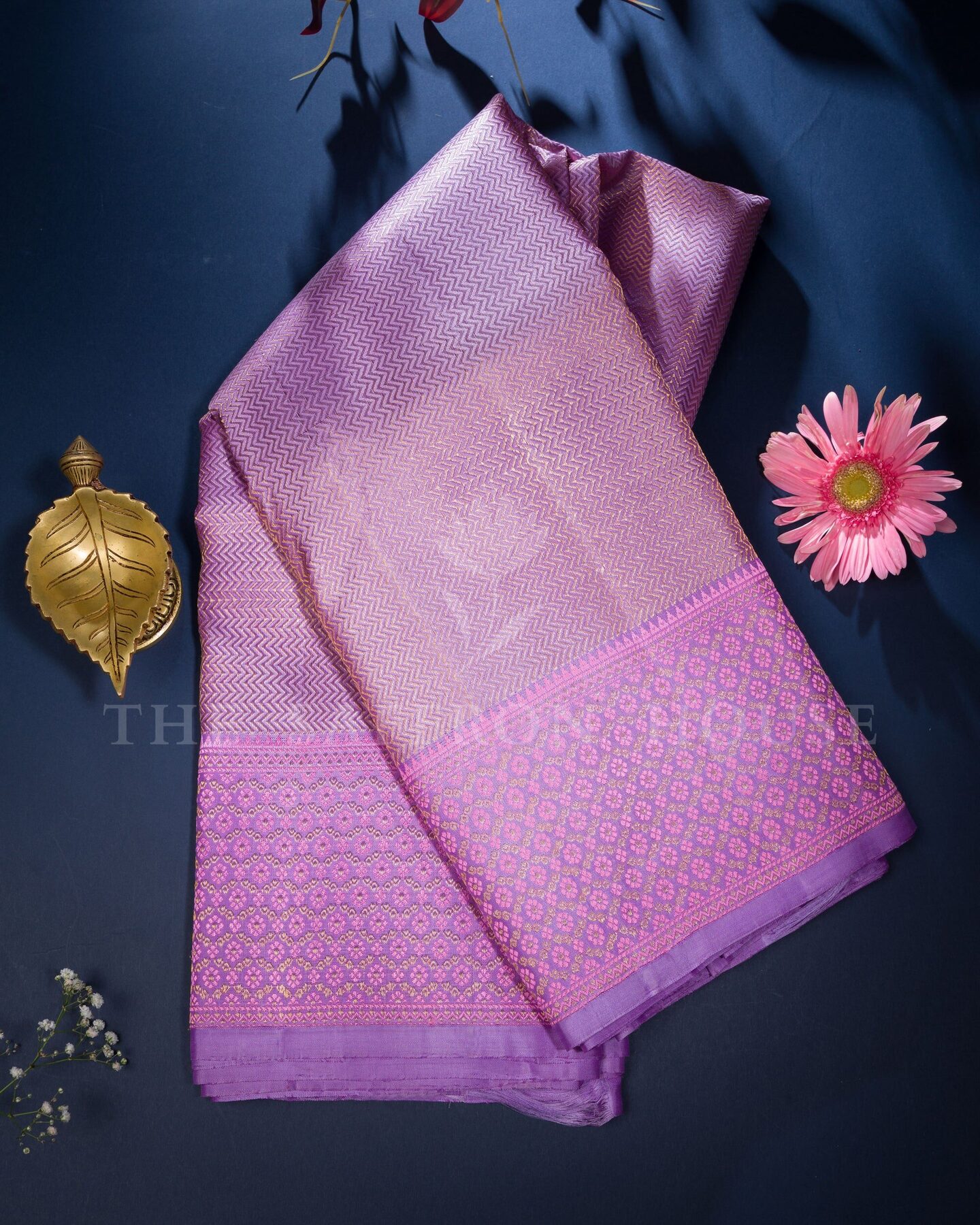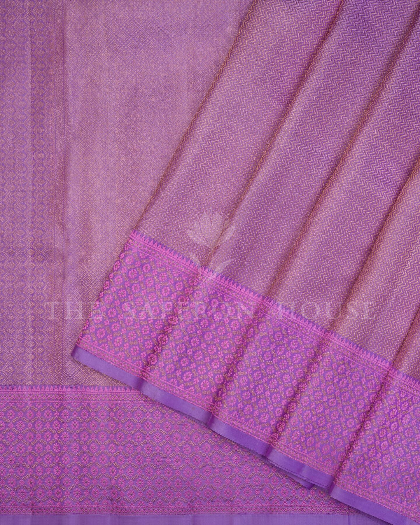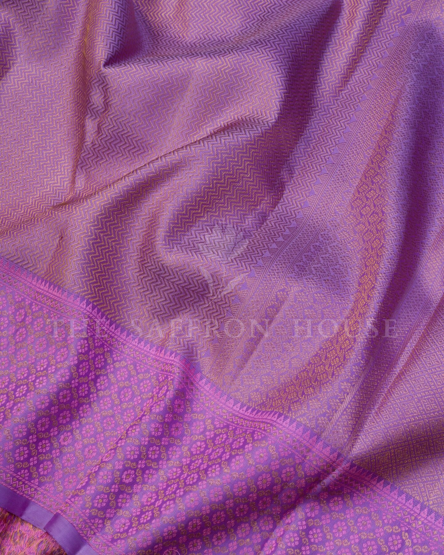 There is something about the interplay of lavender and purple that feels both ancient and alive. This Handwoven Kanjivaram silk saree opens with soft as freshly gathered flowers, its surface shimmering with the unhurried rhythm of the loom.