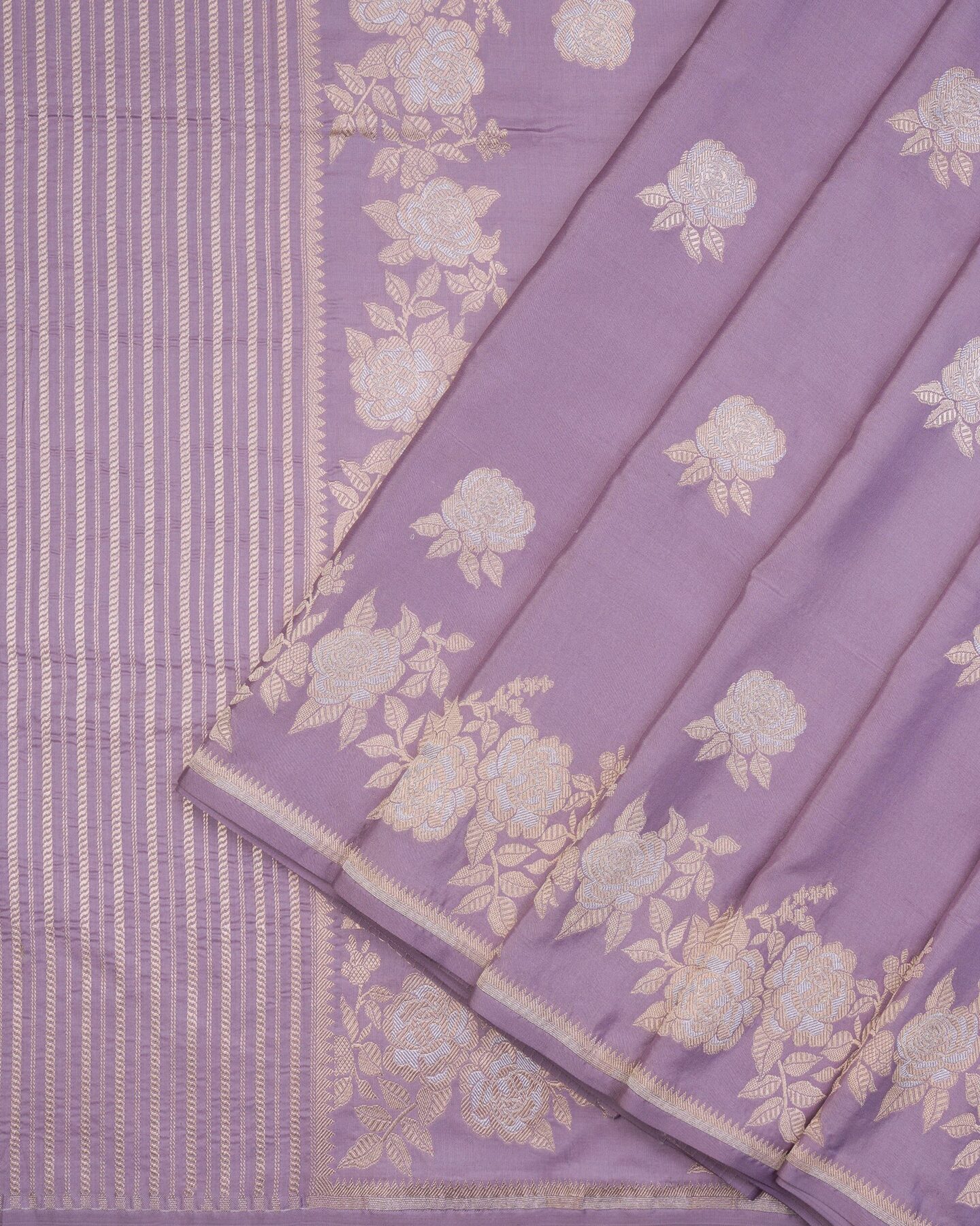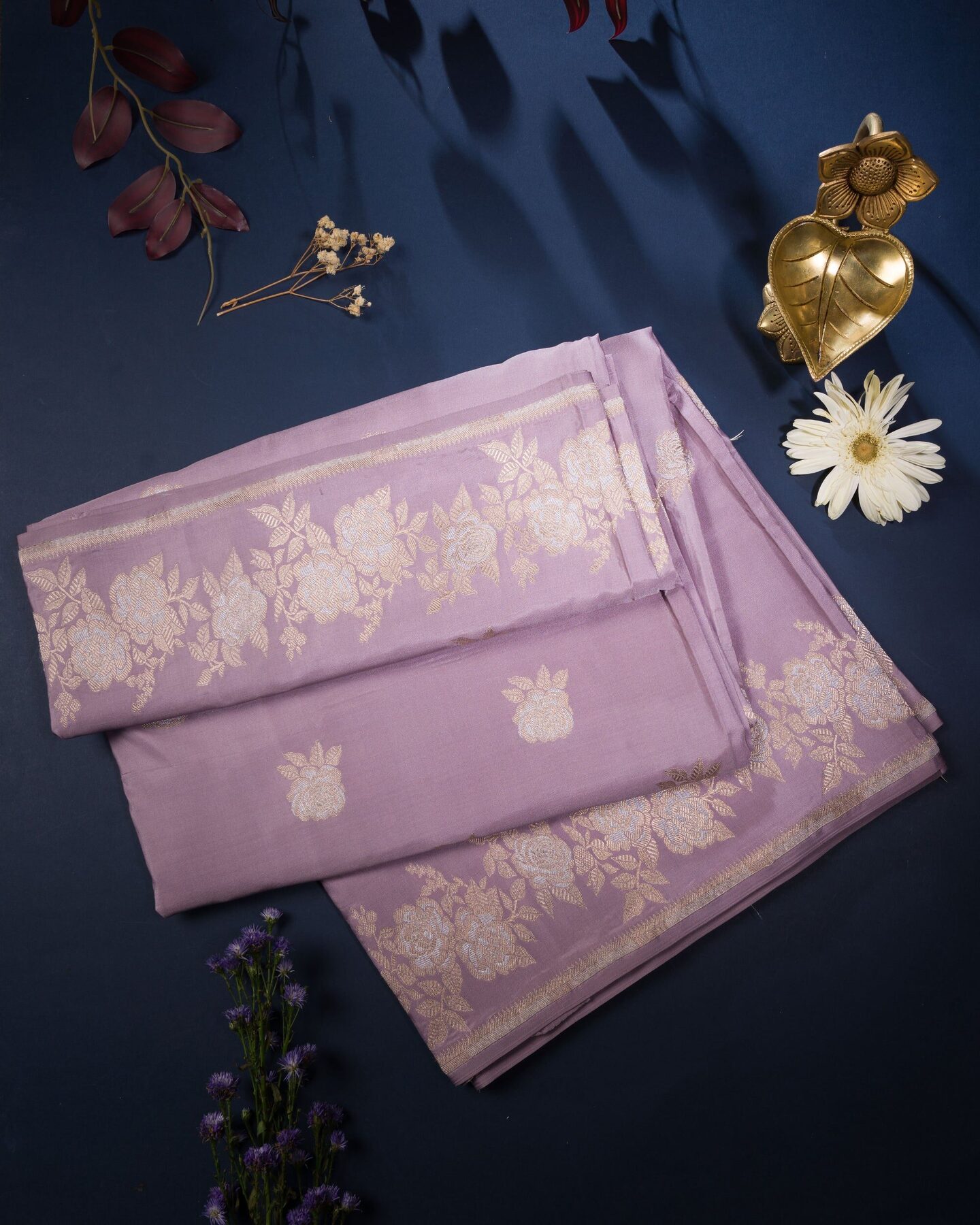 Some colours hold memory. Purple — the hue of quiet royalty — becomes something entirely new when woven into pure Kanjivaram silk. This Handwoven saree carries that colour with quiet authority and grace.