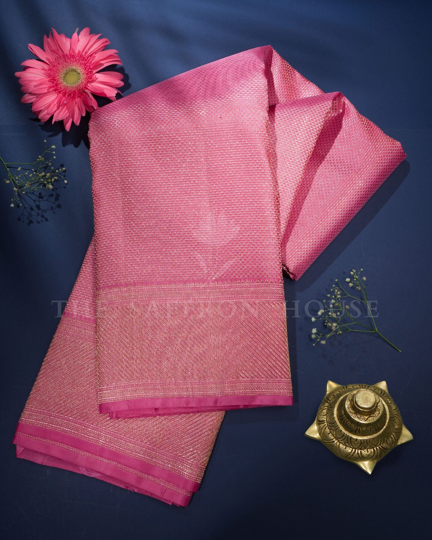 Some colours hold memory. Baby Pink — delicate as the first blush of morning light — becomes something entirely new when woven into pure Kanjivaram silk. This Brocade saree carries that colour with quiet authority and grace.