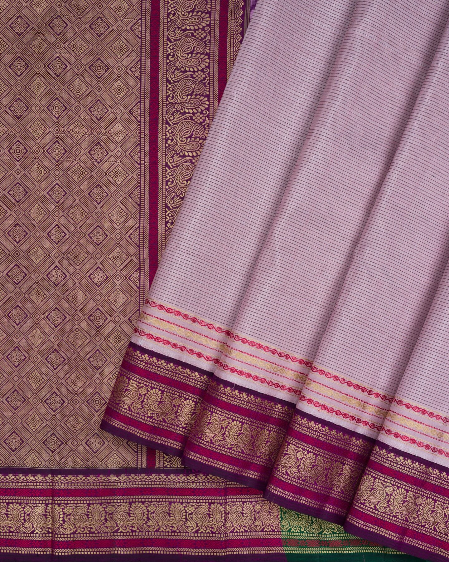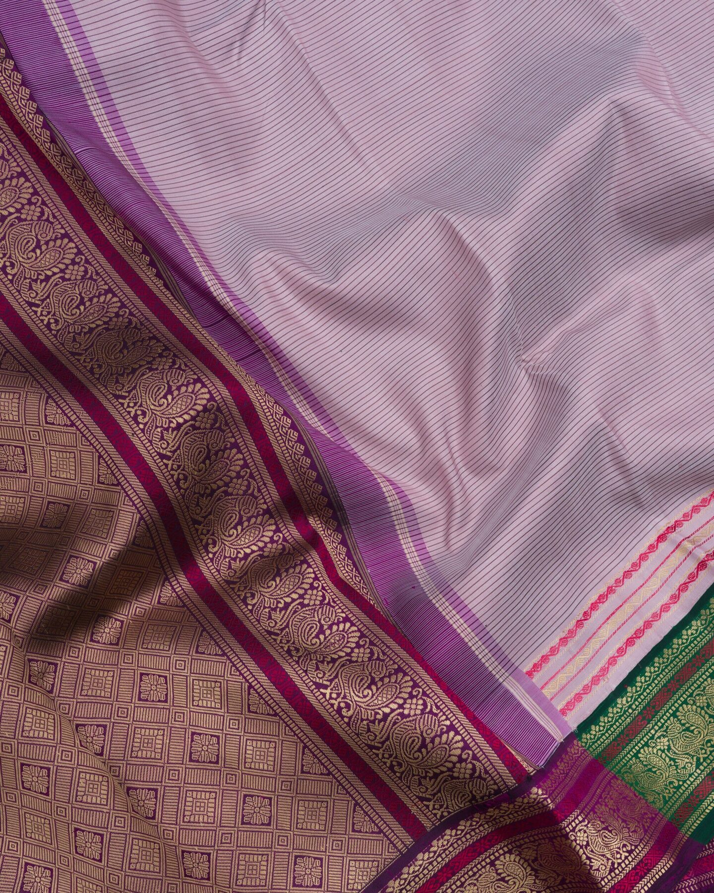 Lilac And Purple Kattam Kanjivaram Silk Saree – The Saffron House