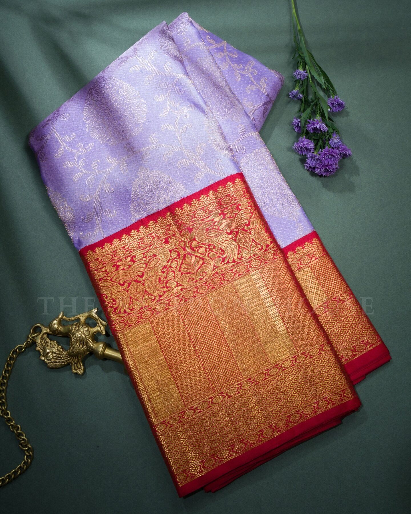 Lilac And Burgundy Maroon Brocade Kanjivaram Silk Saree – The Saffron House