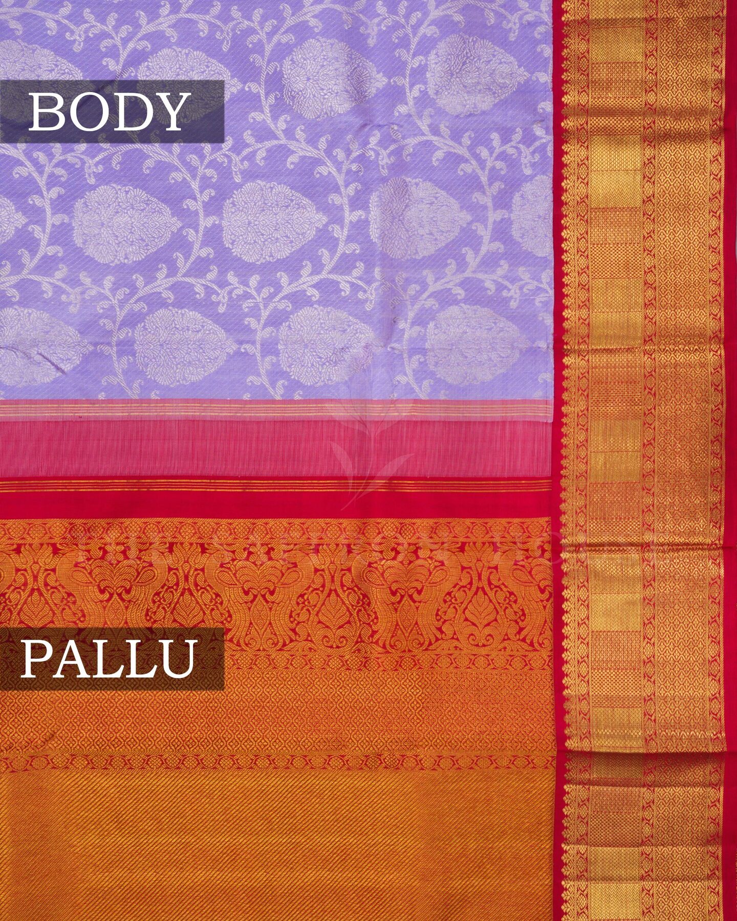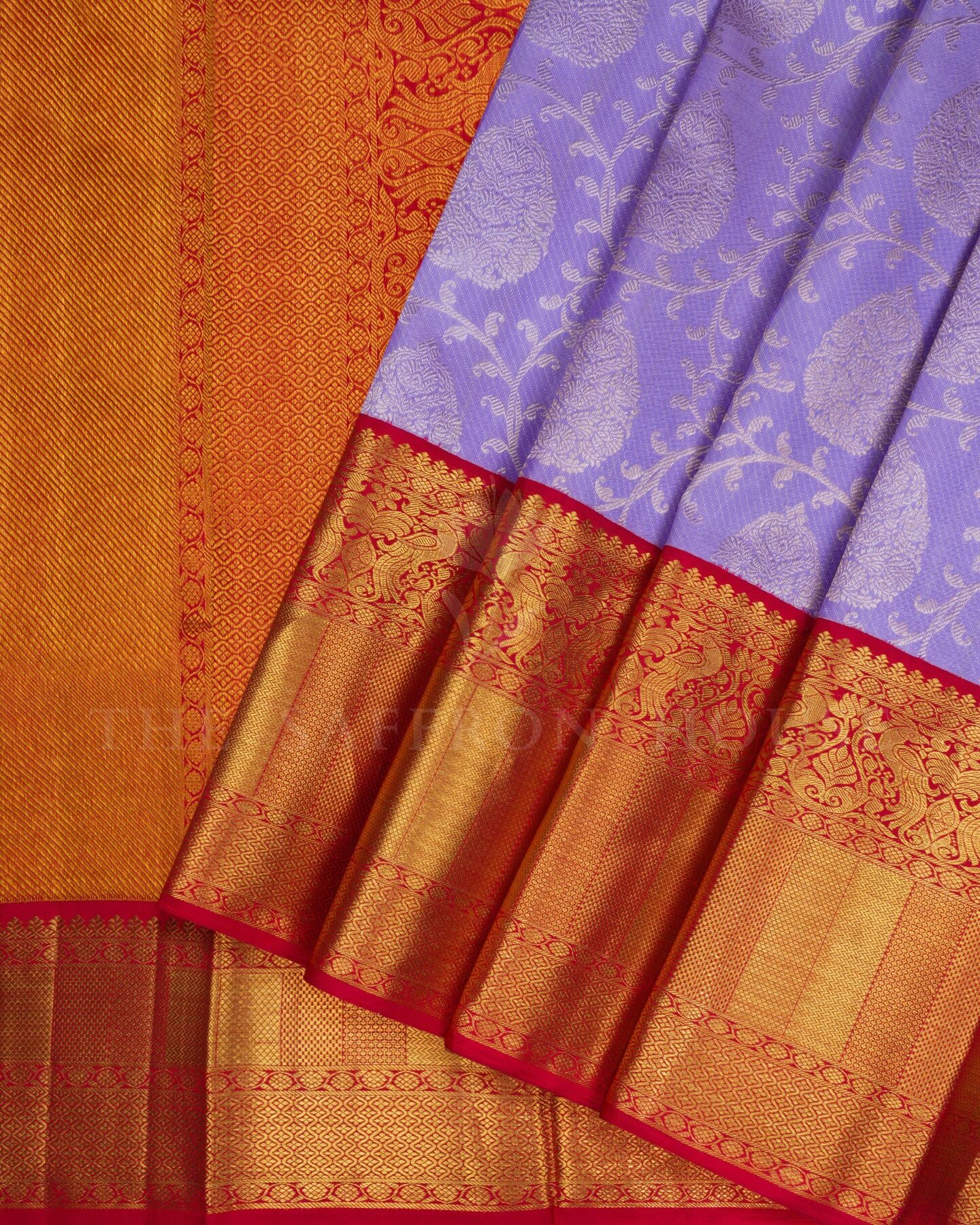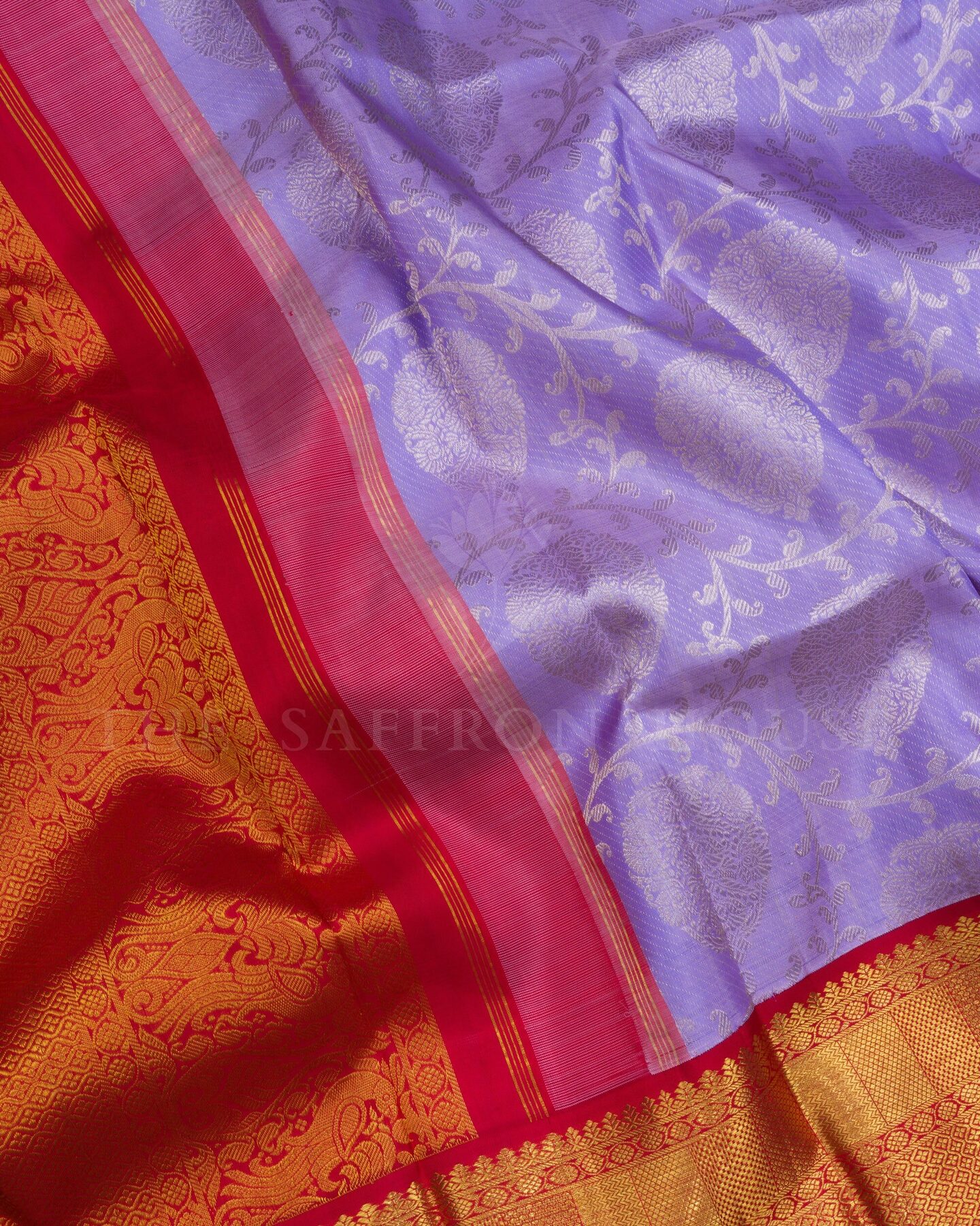 Lilac And Burgundy Maroon Brocade Kanjivaram Silk Saree