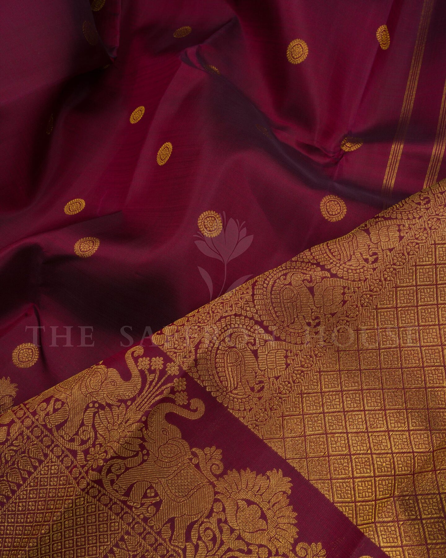Pure mulberry silk with pure zari weaving, providing a rich, lustrous texture and structure that drapes like a dream — ideal for festive dressing.. From the looms of Kanchipuram, Tamil Nadu, where master weavers have passed down their skills over generations.