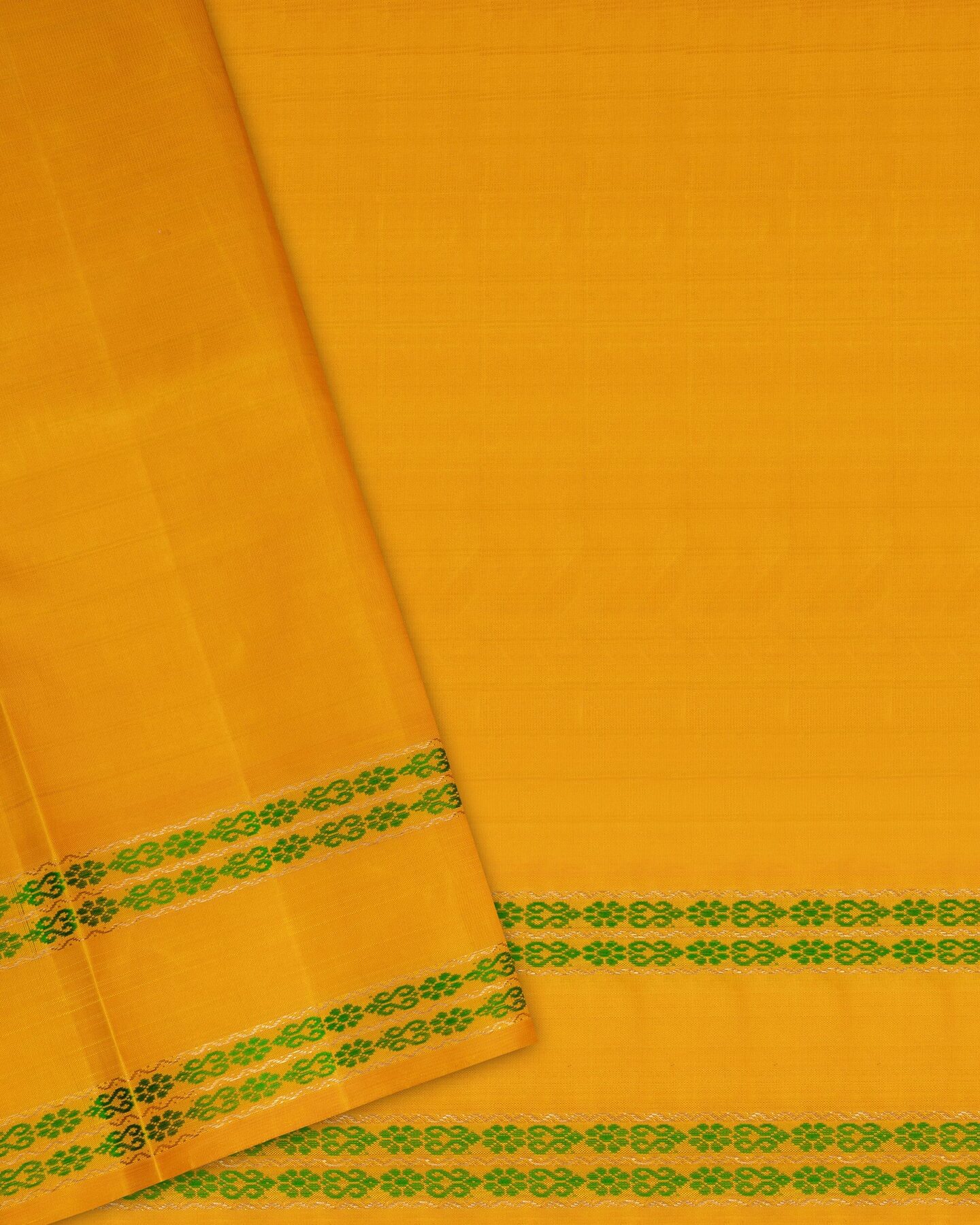 Some colours hold memory. Mustard Yellow — radiant in its own quiet way — becomes something entirely new when woven into pure Kanjivaram silk. This Kattam saree carries that colour with quiet authority and grace.