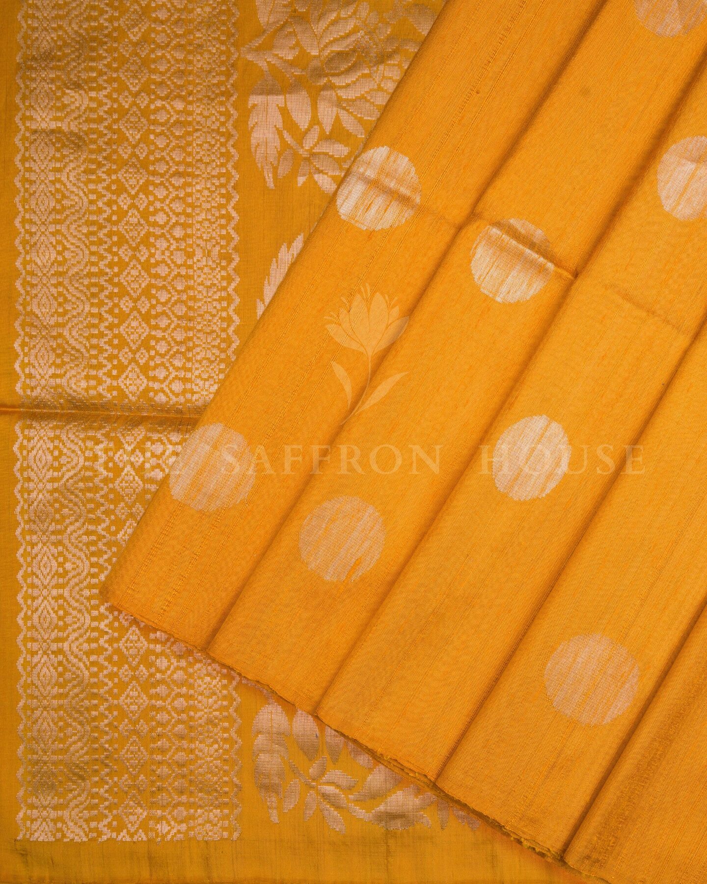 Tussar silk is a type of wild silk known for its natural golden sheen and rich texture.. South India.
