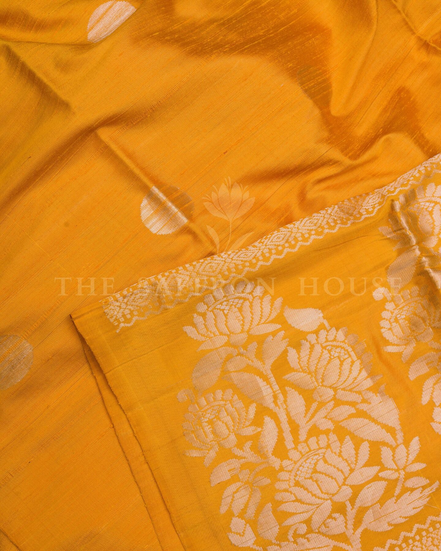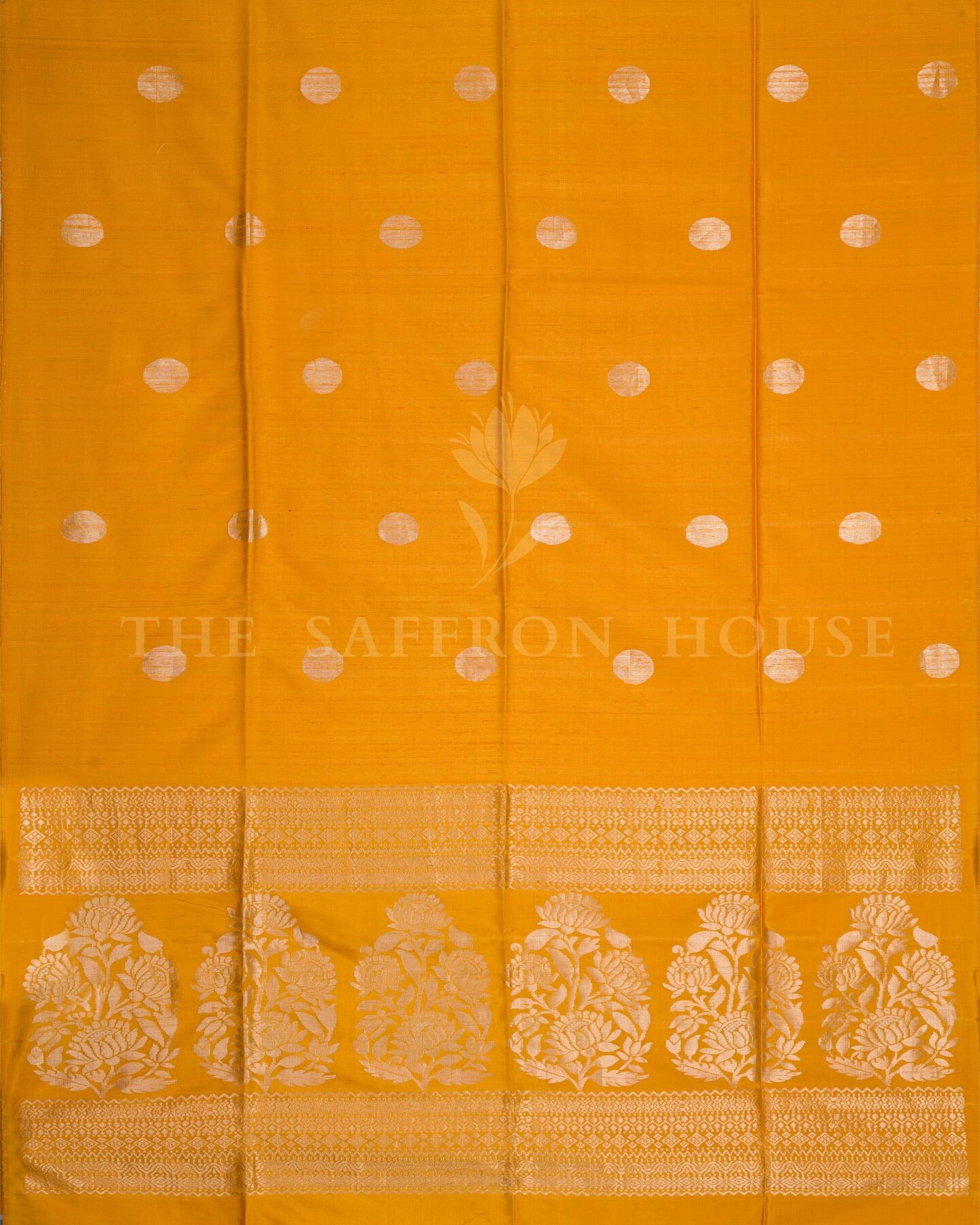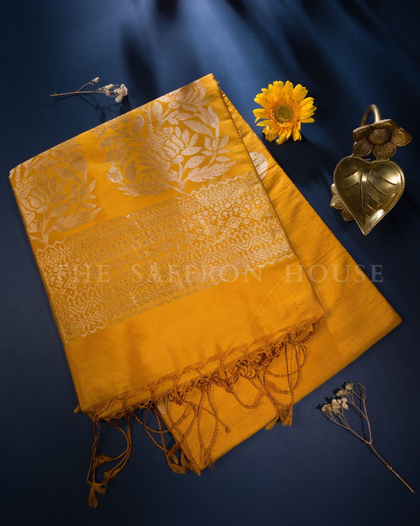 Some colours hold memory. Mustard Yellow — radiant in its own quiet way — becomes something entirely new when woven into pure Kanjivaram silk. This Brocade saree carries that colour with quiet authority and grace.