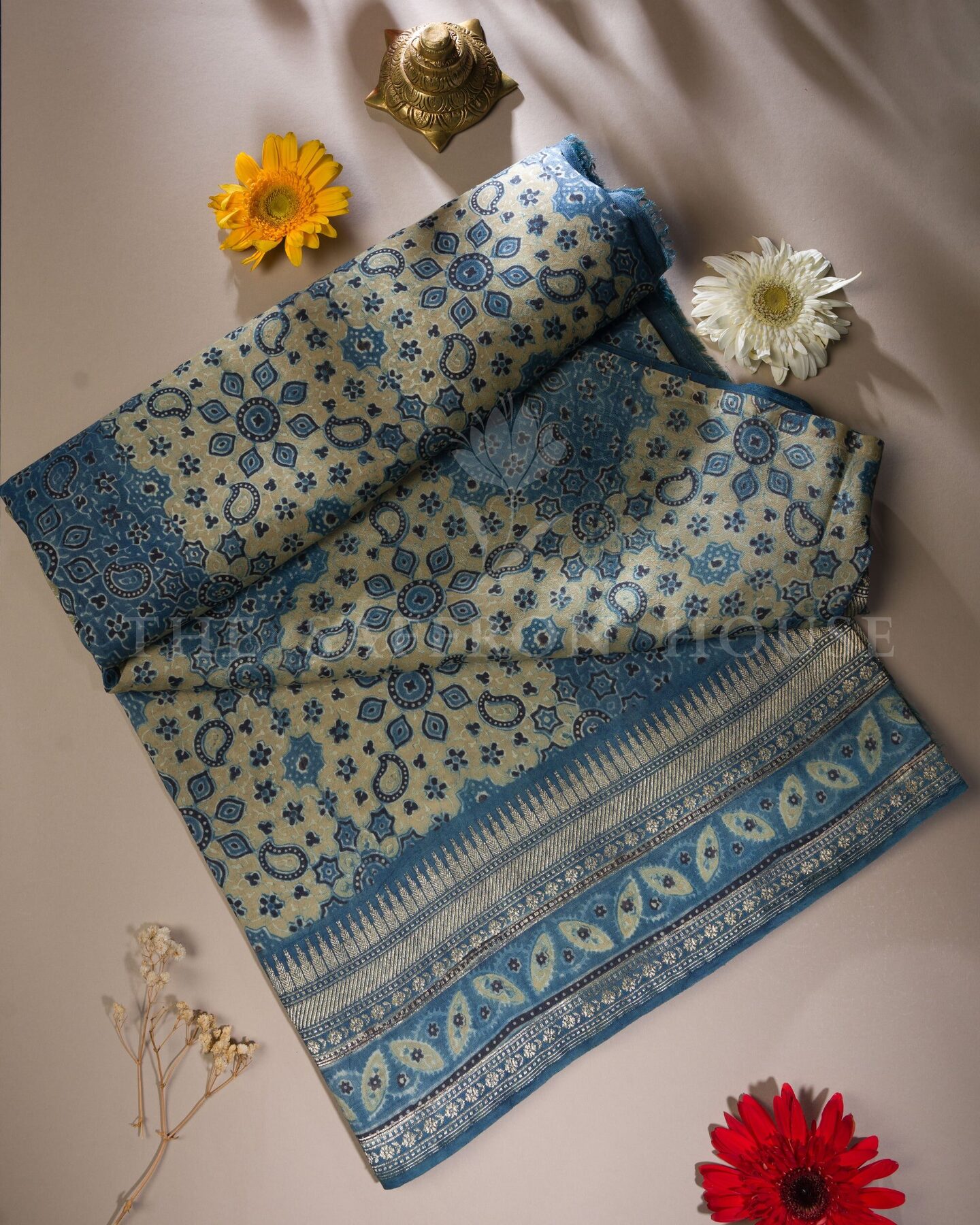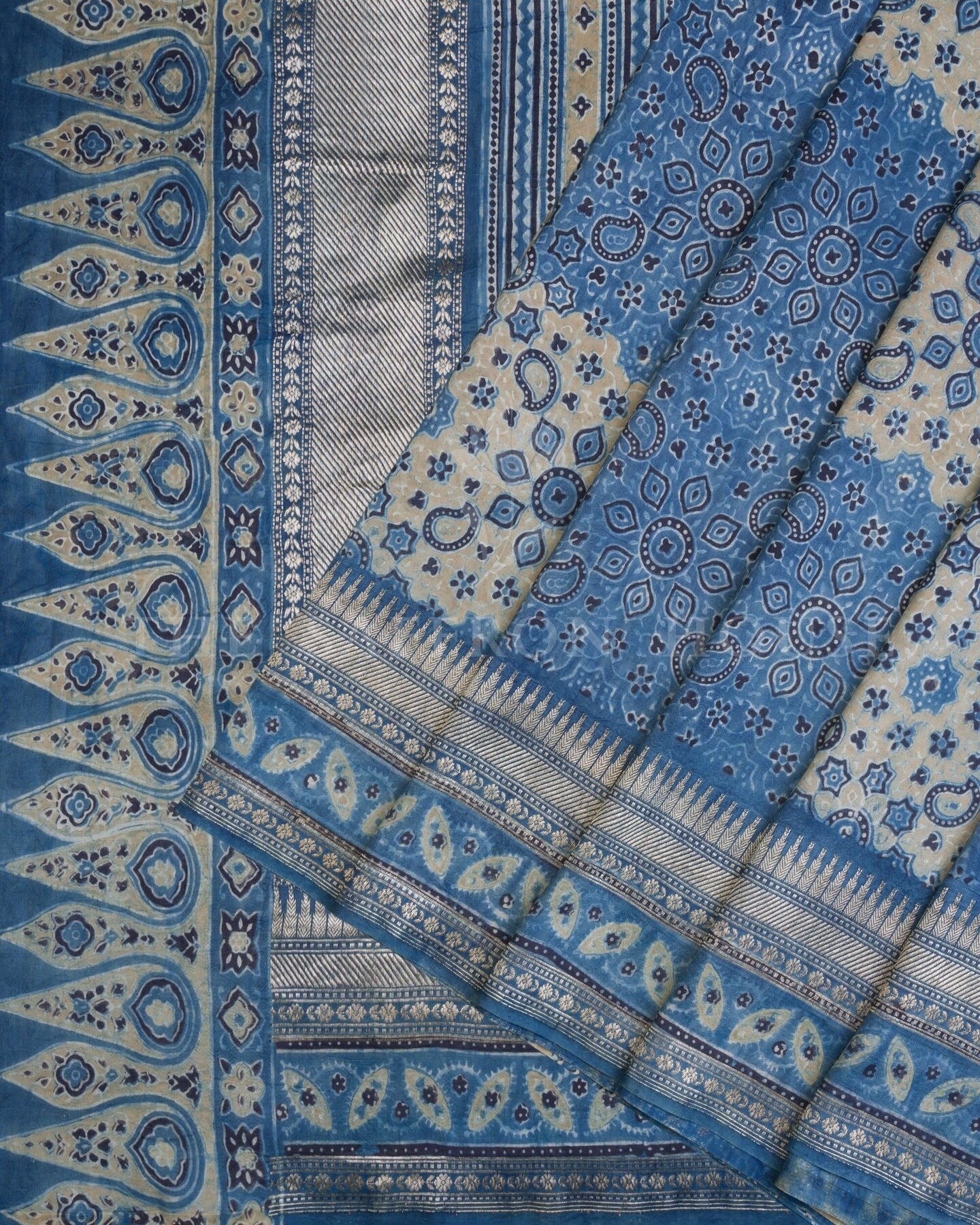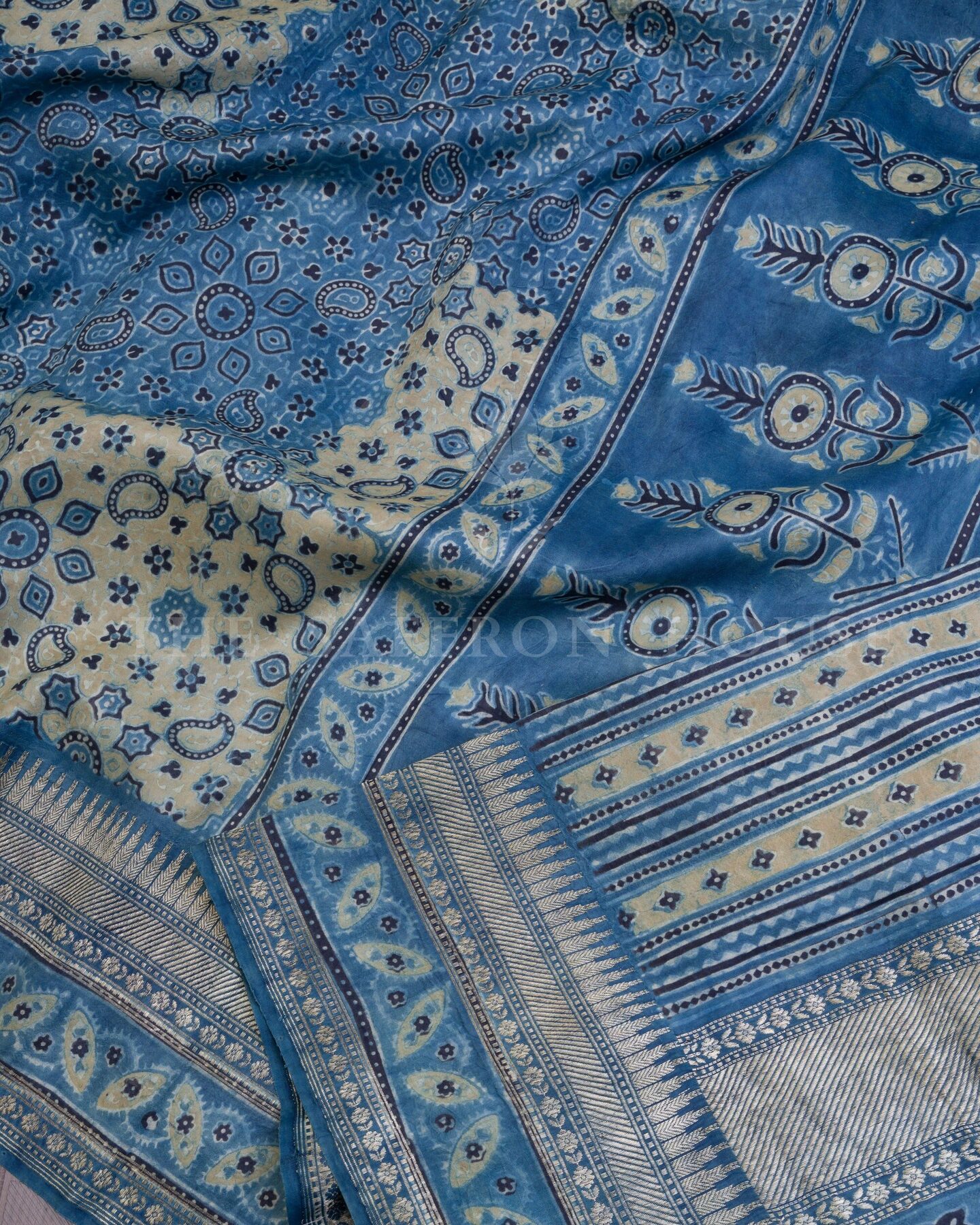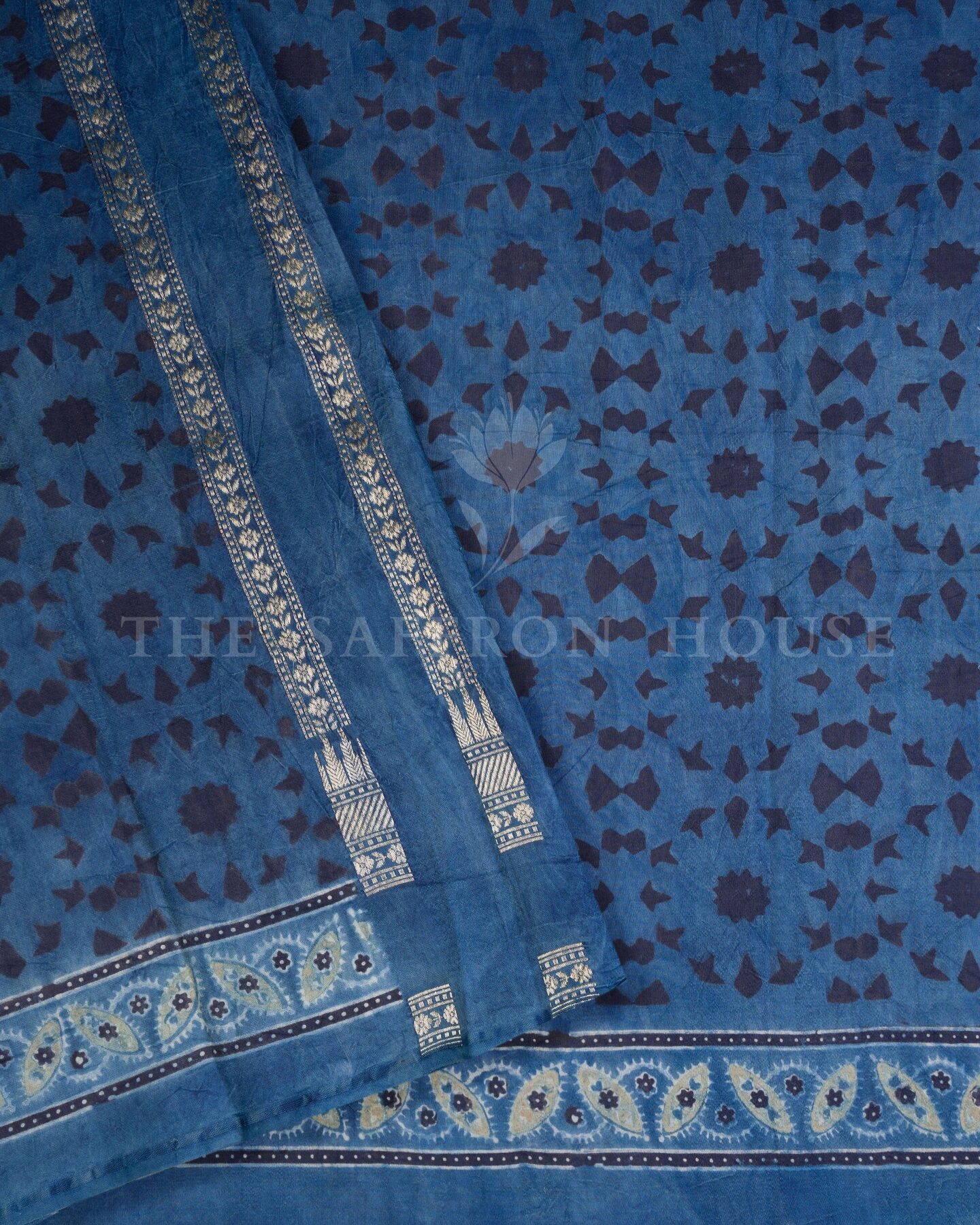 There is something about the interplay of indigo and blue that feels both ancient and alive. This Brocade Kanjivaram silk saree opens with radiant in its own quiet way, its surface shimmering with the unhurried rhythm of the loom.