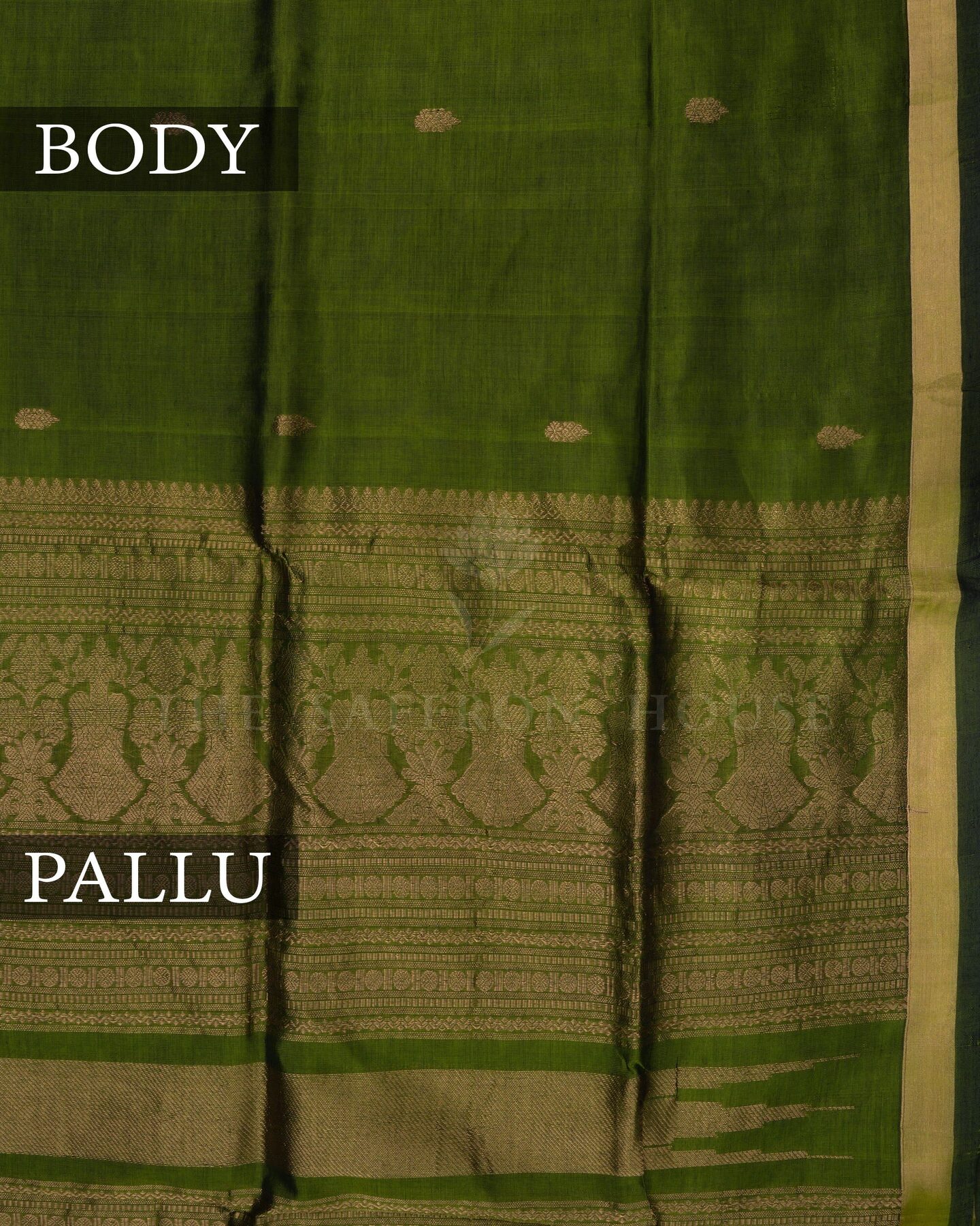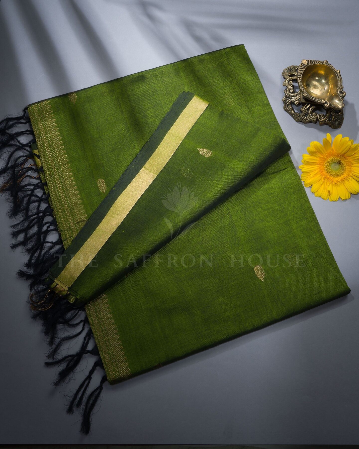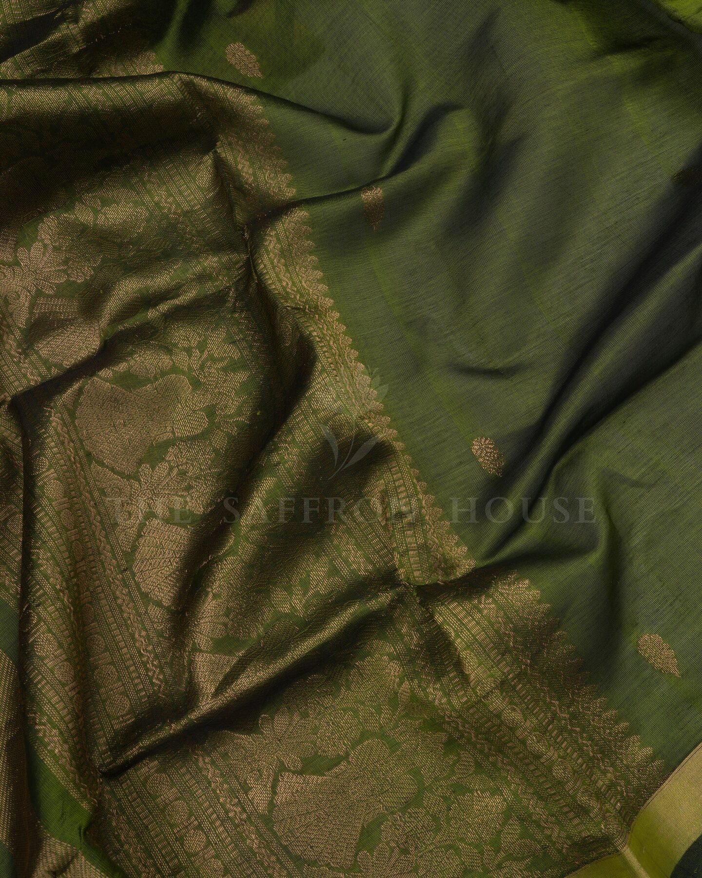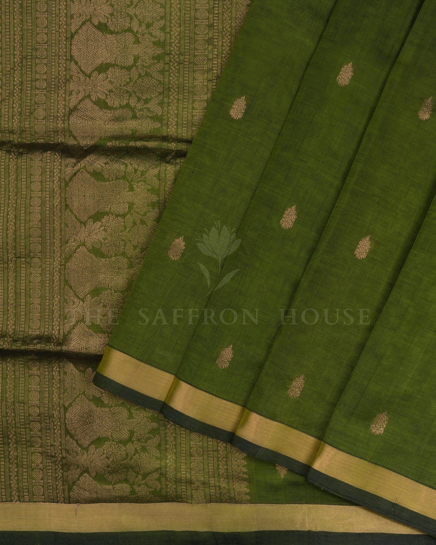 Olive Green Handwoven Silk Cotton Saree – The Saffron House