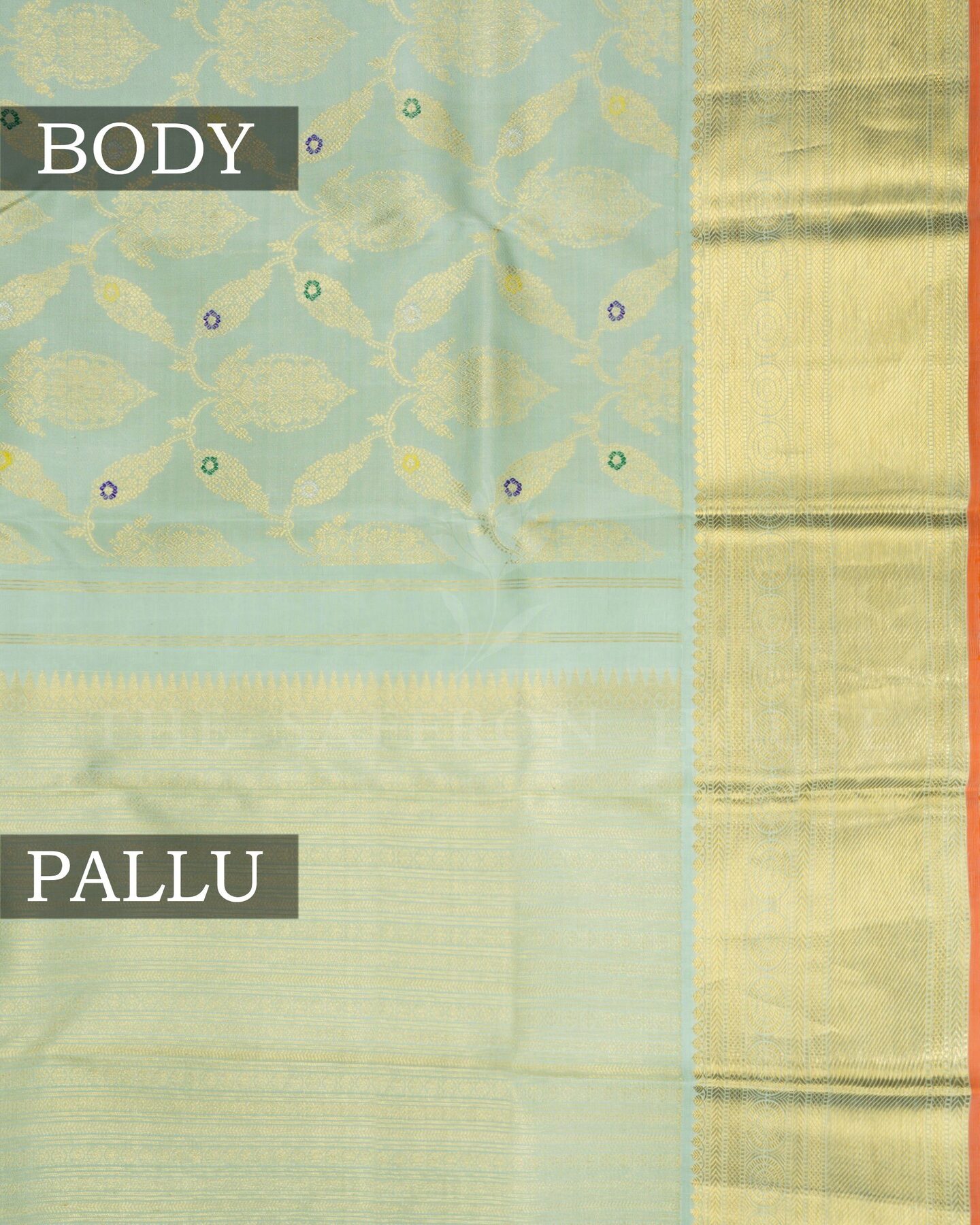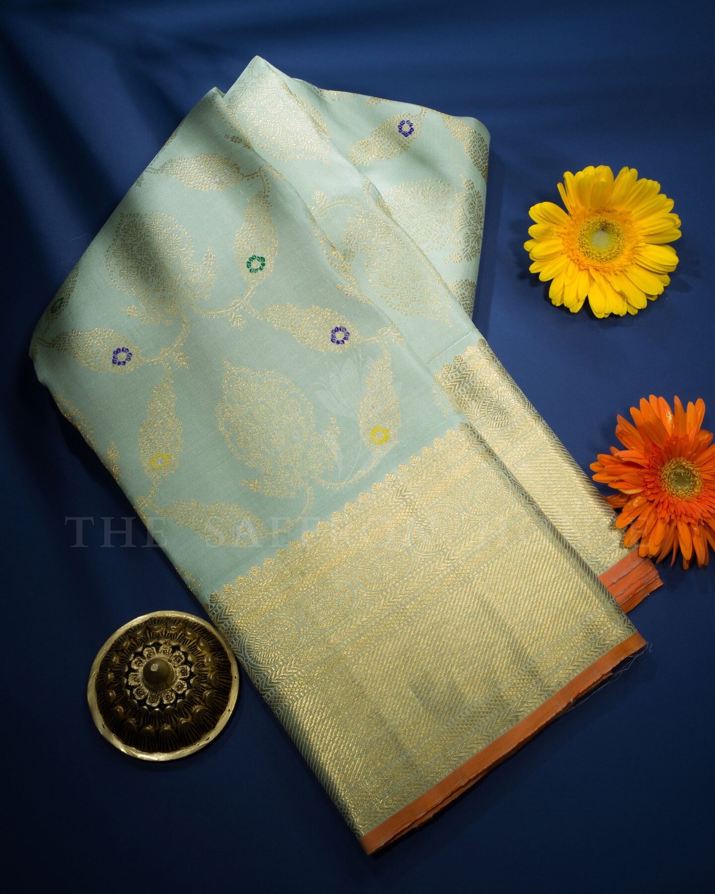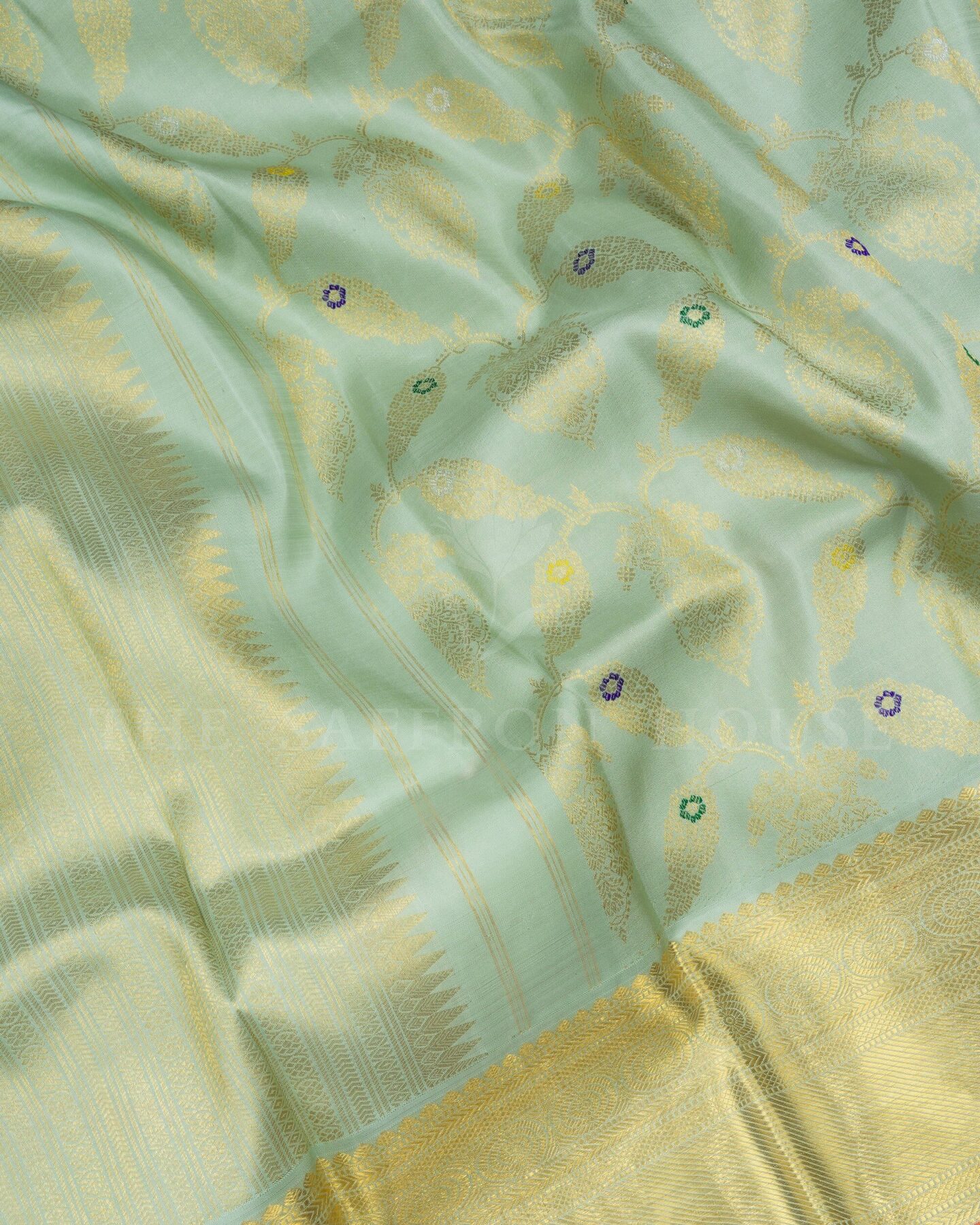 Some colours hold memory. Mint — radiant in its own quiet way — becomes something entirely new when woven into pure Kanjivaram silk. This Brocade saree carries that colour with quiet authority and grace.