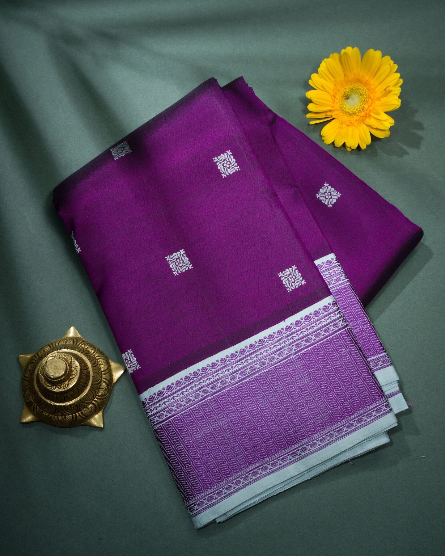 Pure mulberry silk with pure zari weaving, providing a rich, lustrous texture and structure that drapes like a dream — ideal for festive dressing.. From the looms of Kanchipuram, Tamil Nadu, where master weavers have passed down their skills over generations.