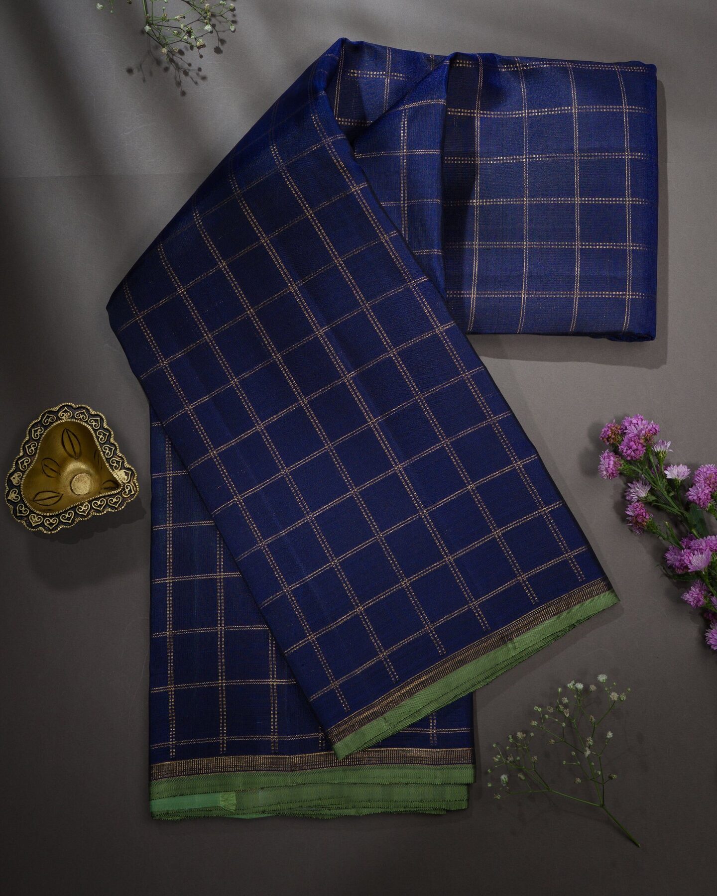 Royal Blue And Olive Green Kattam Kanjivaram Silk Saree – The Saffron House