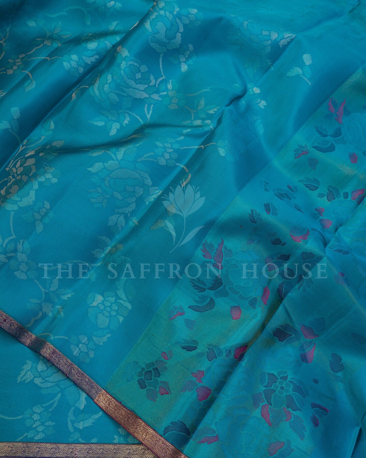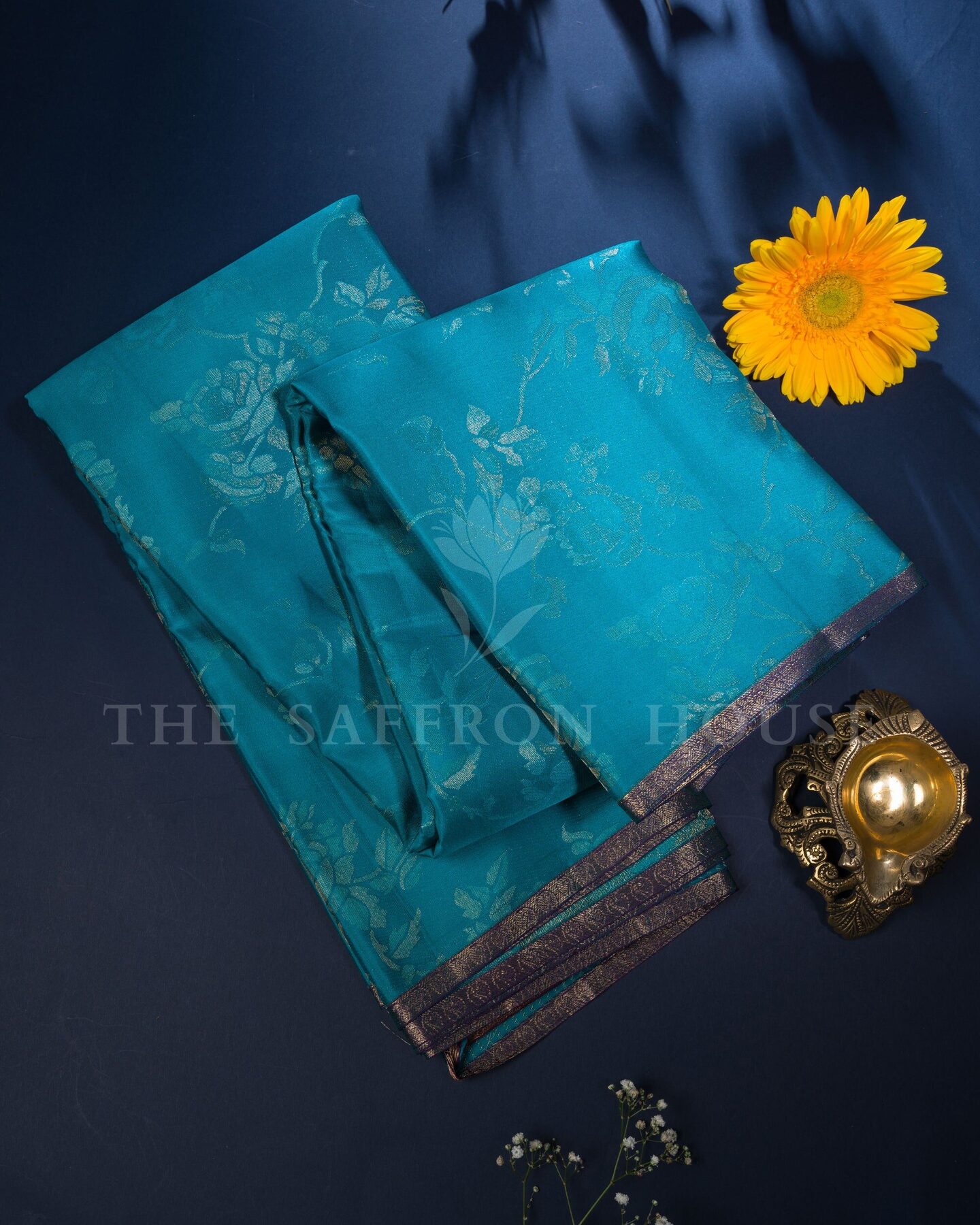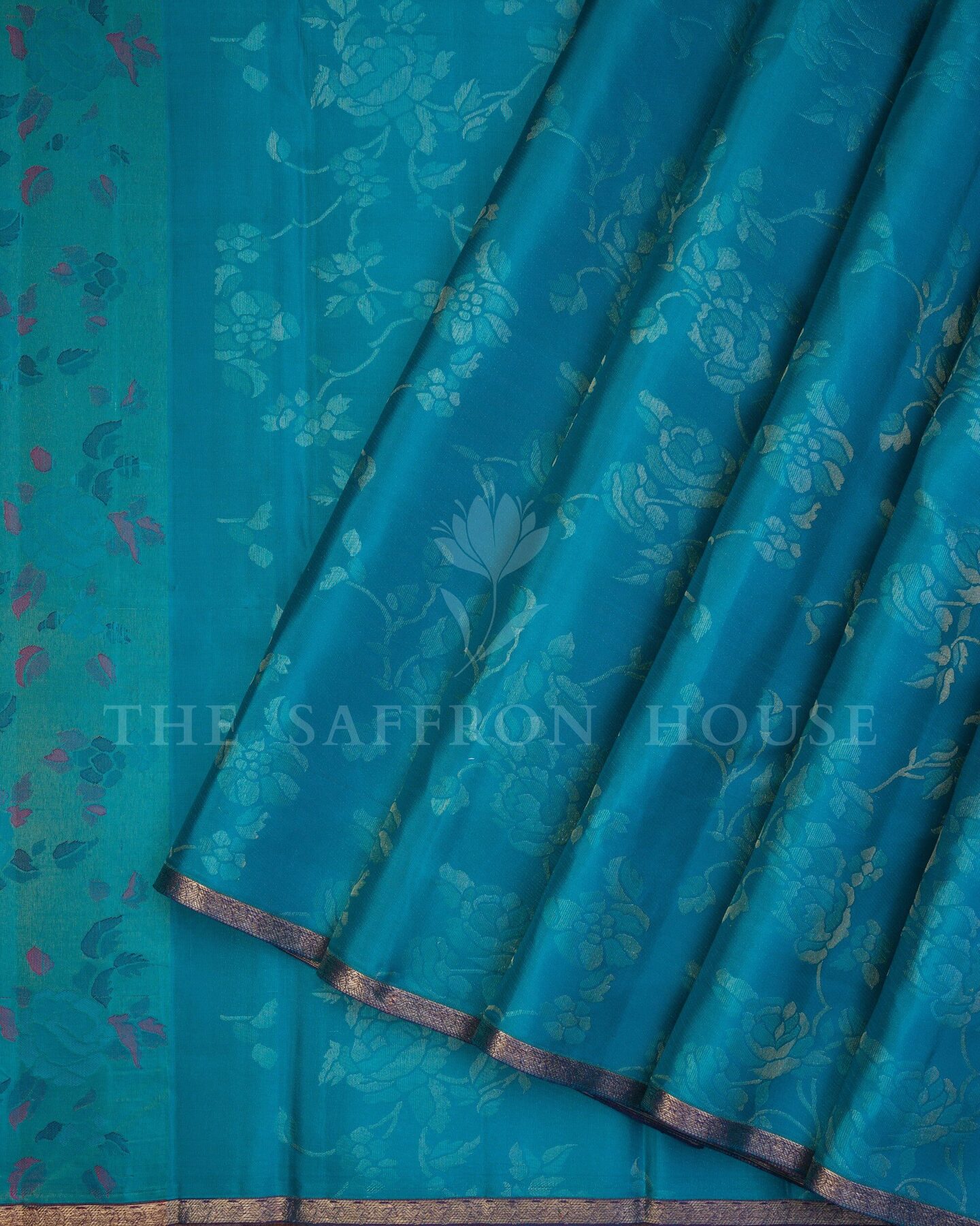 Some colours hold memory. Teal — the colour where sea meets sky — becomes something entirely new when woven into pure Kanjivaram silk. This Handwoven saree carries that colour with quiet authority and grace.